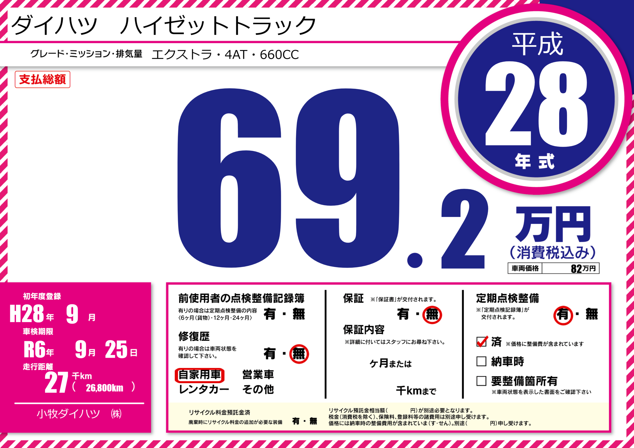| 定期点検整備 | 定期点検整備あり 定期点検整備済み | ||