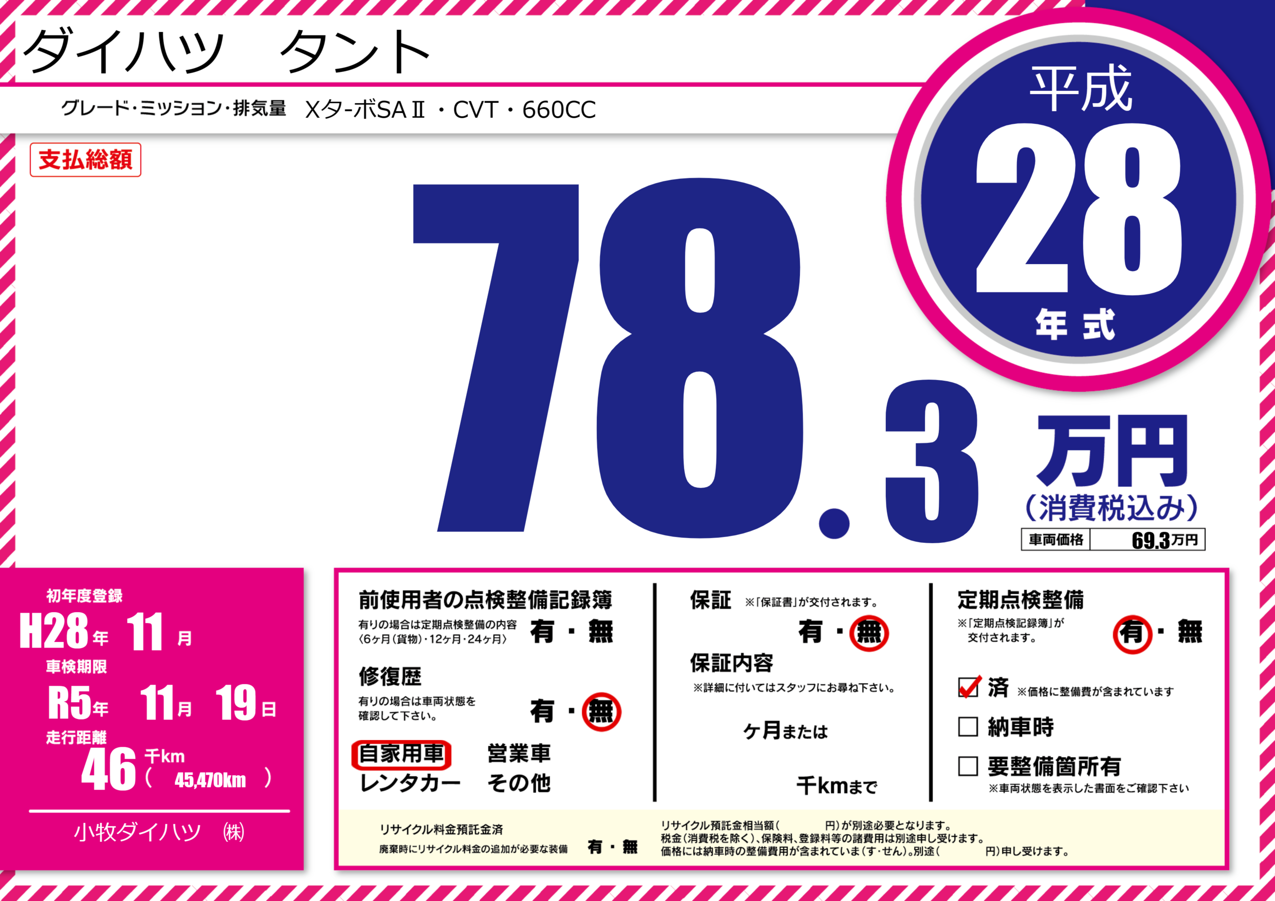 | 定期点検整備 | 定期点検整備あり 定期点検整備済み | ||