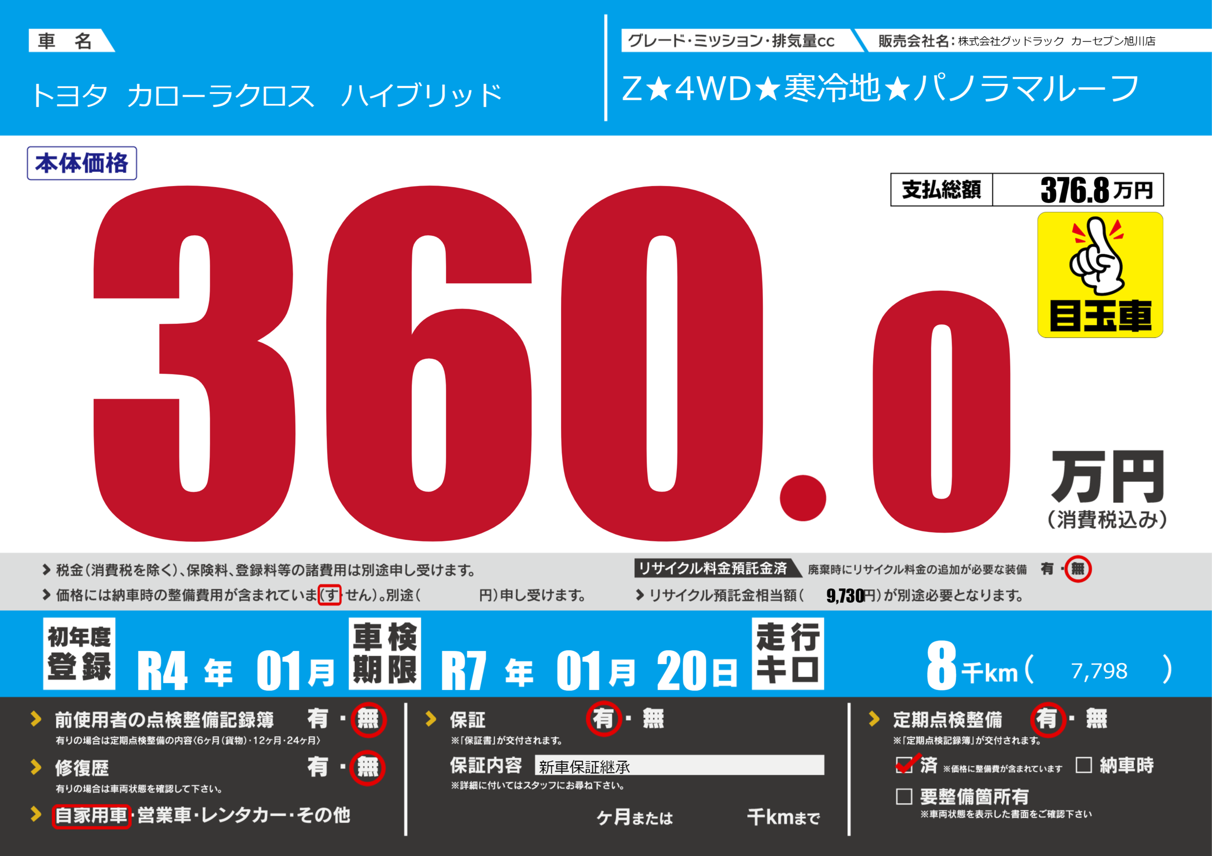 | 定期点検整備 | 定期点検整備あり 定期点検整備済み | ||