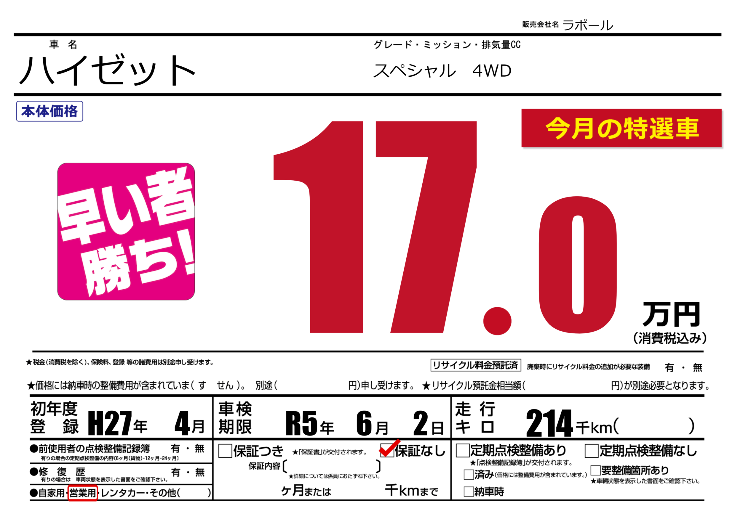 なし | 車検制限 | R5年6月2月 |