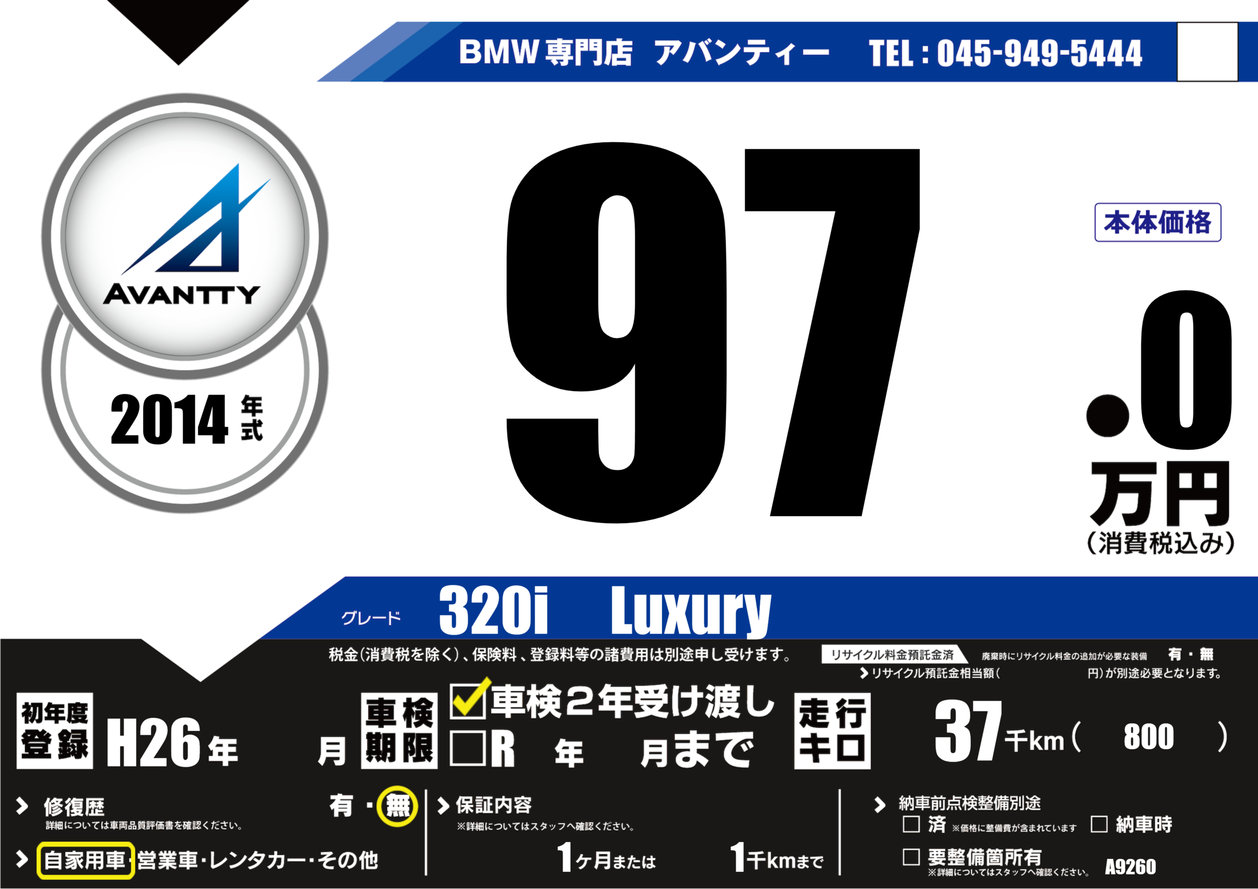| 走行キロ | 3.7万km | 初年度登録 | H26年---月 |