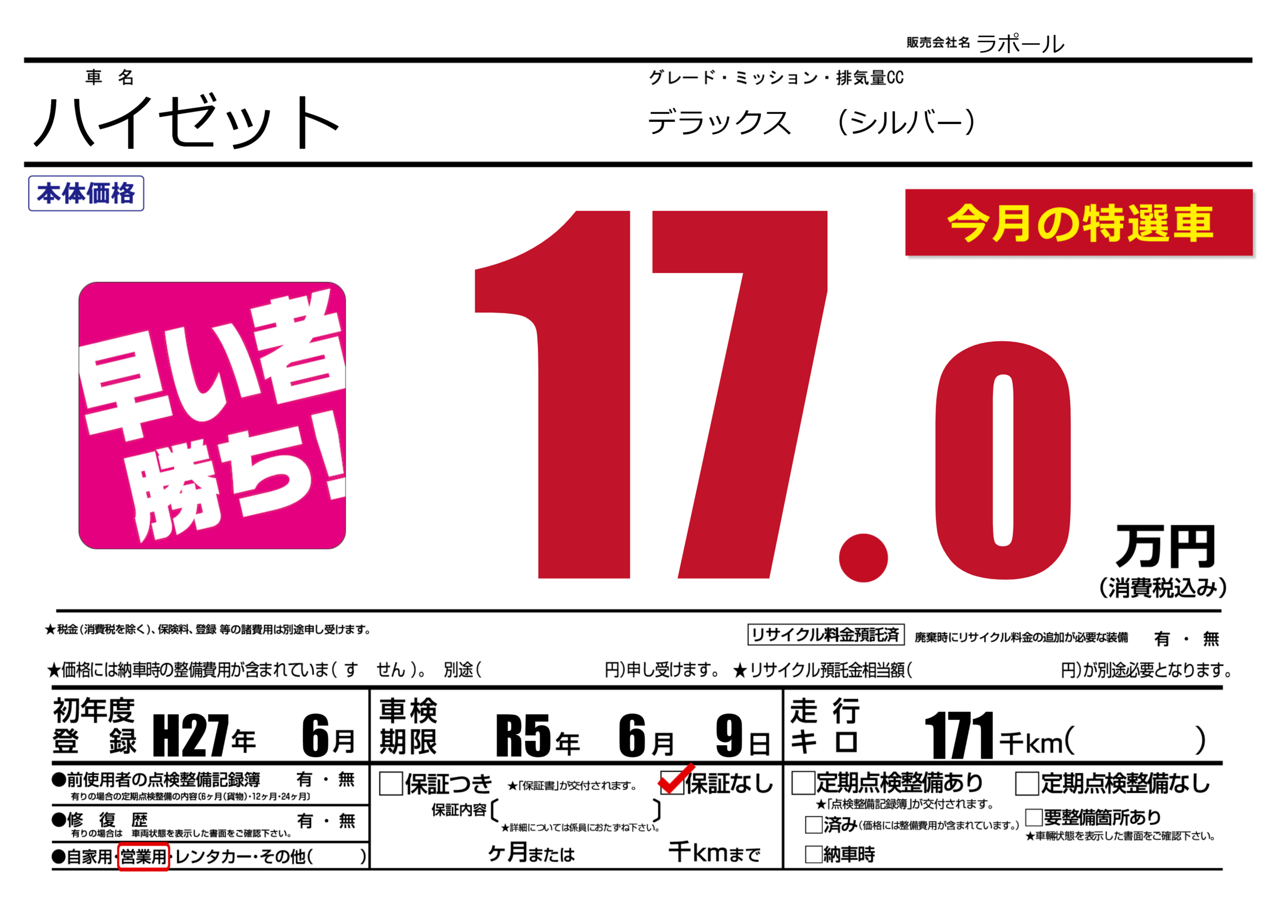 | メーカー | - | 種別 | 営業用 |