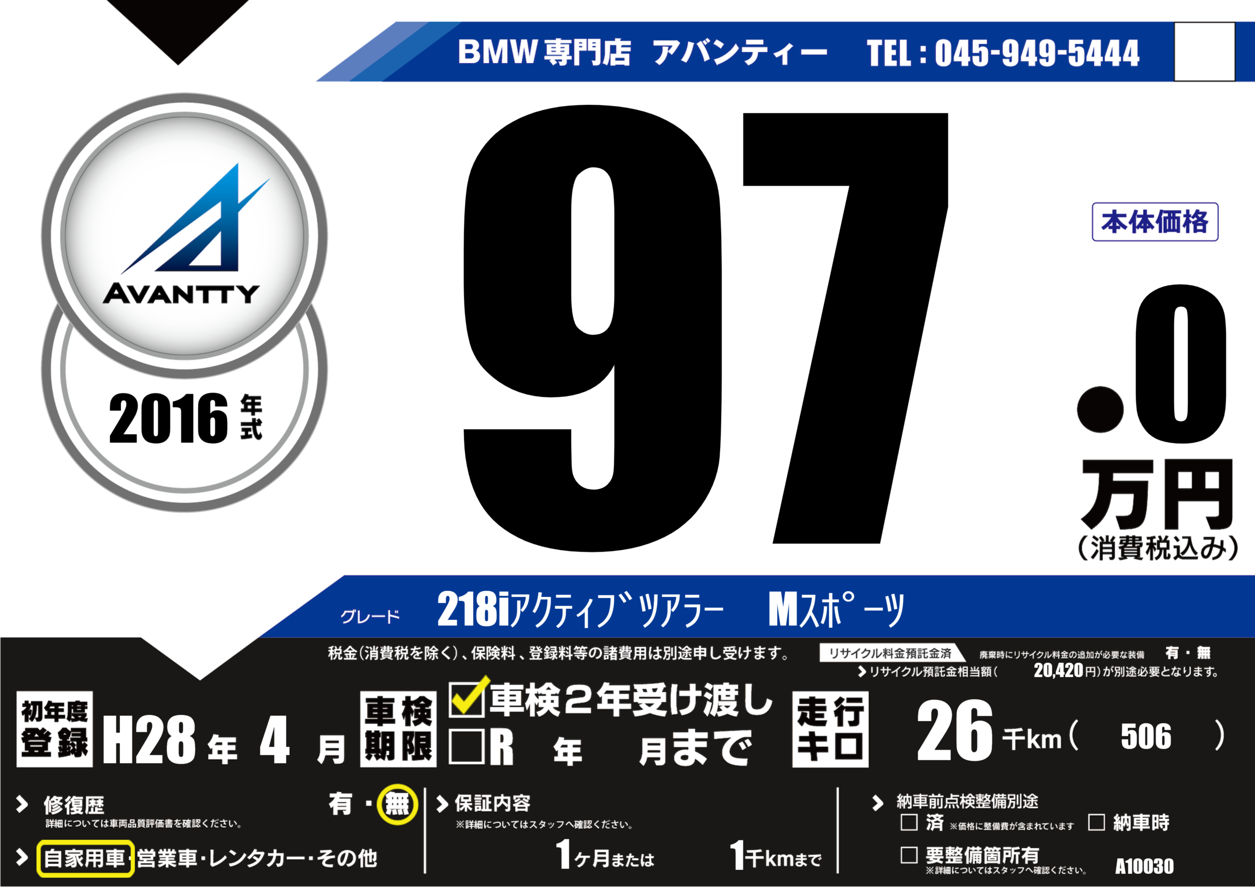 | 走行キロ | 2.6万km | 初年度登録 | H28年4月 |