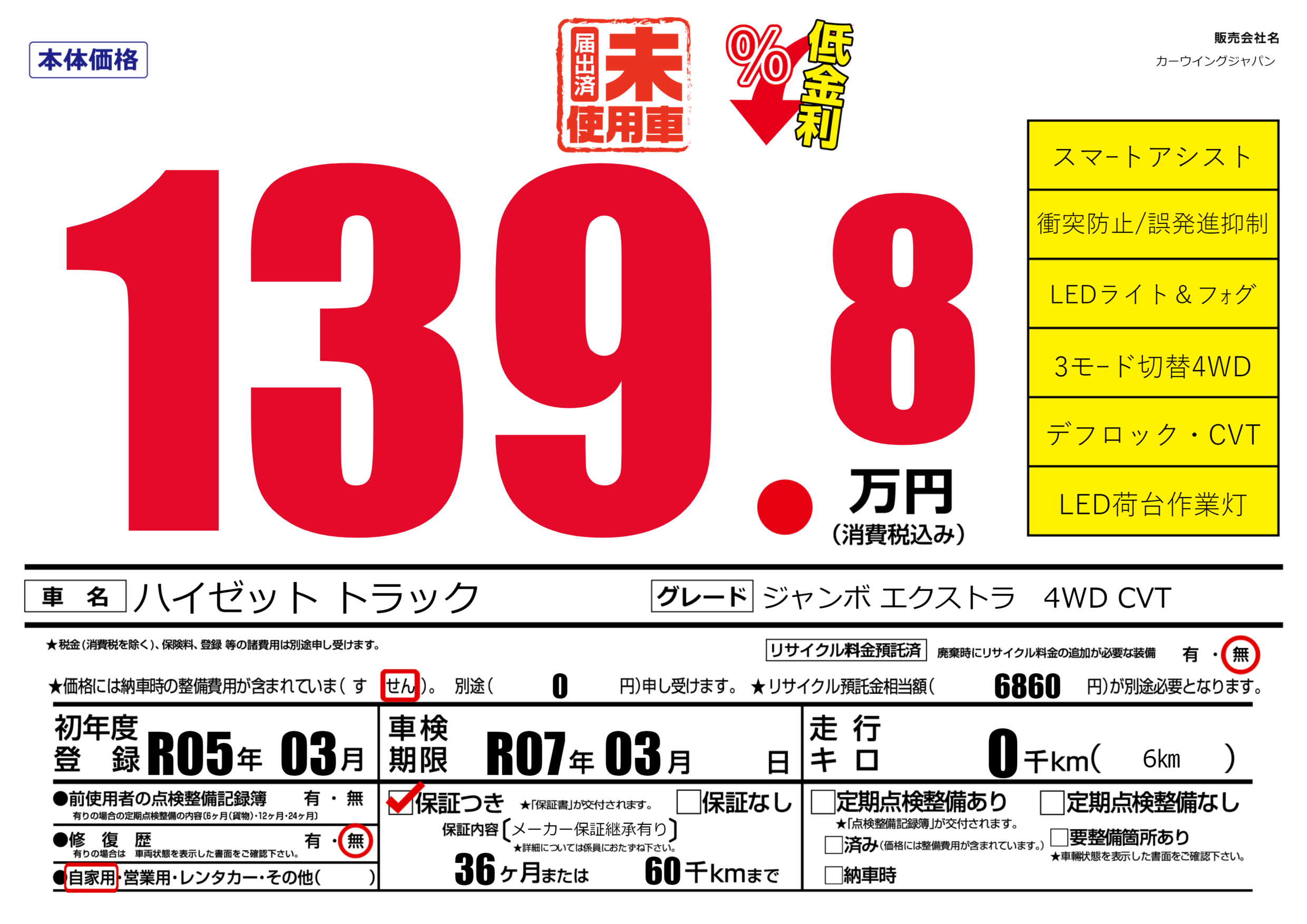| 走行キロ | - | 初年度登録 | R05年03月 |