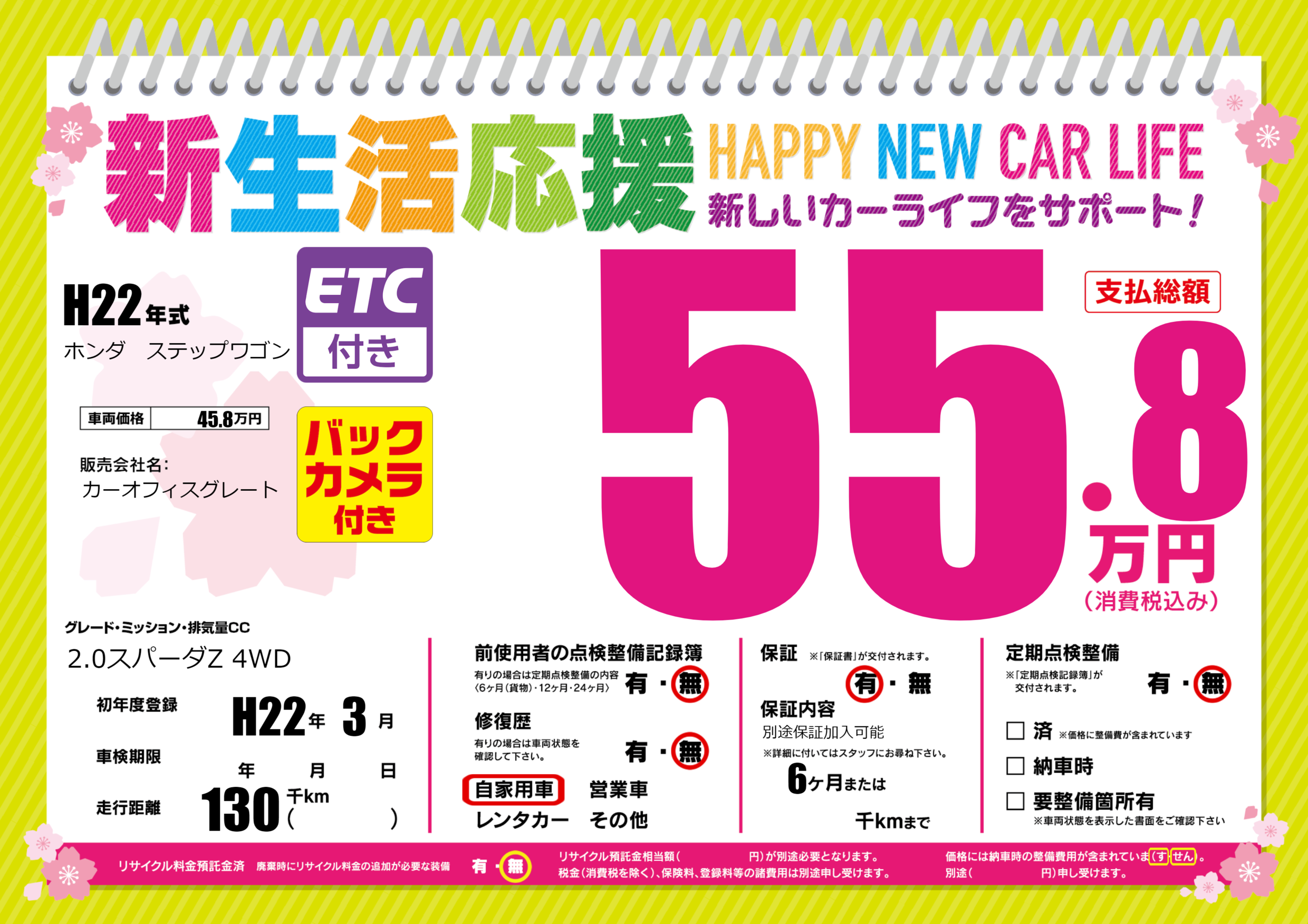 | 走行キロ | 13万km | 初年度登録 | H22年3月 |