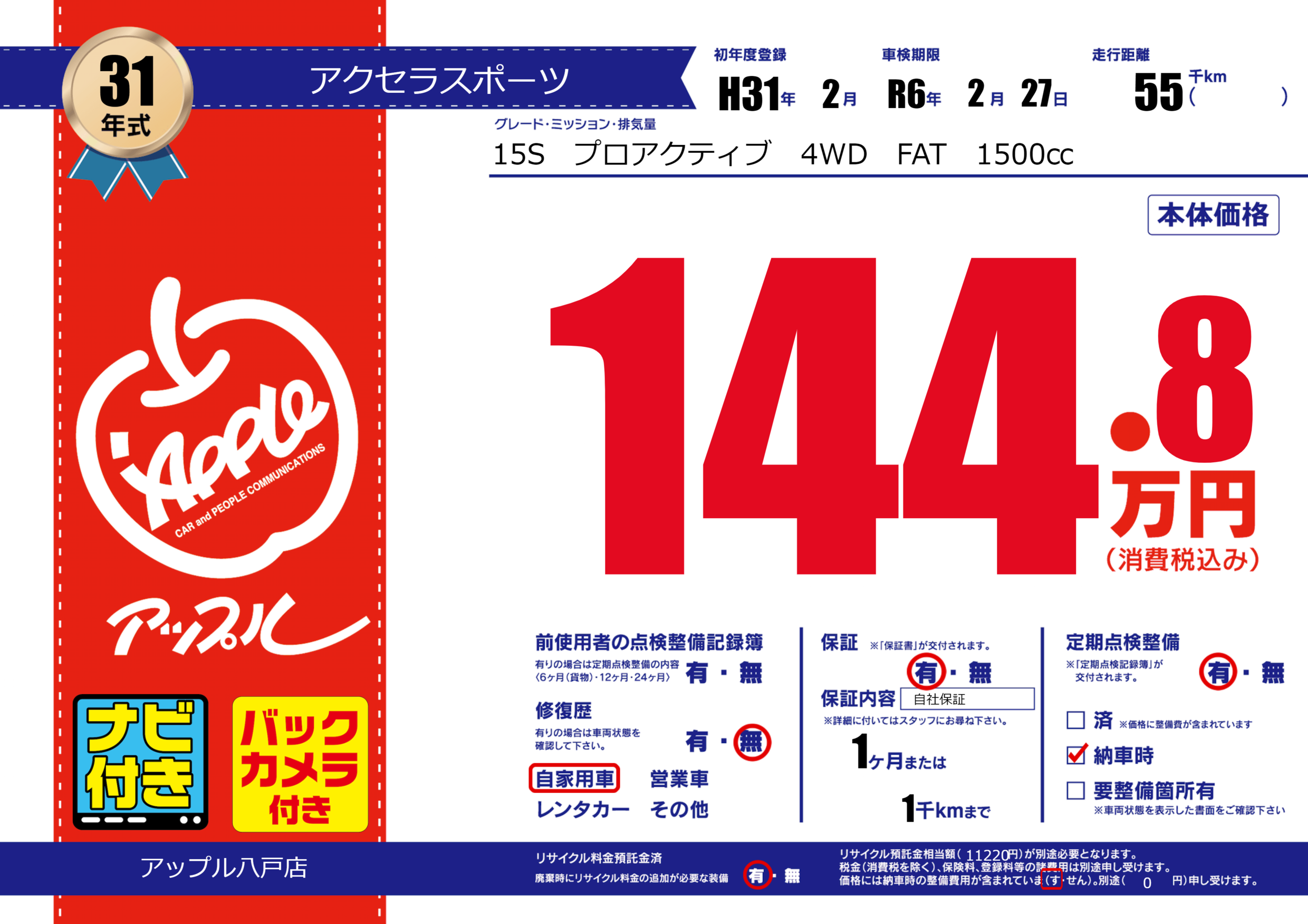 | 車名 | アクセラスポーツ | グレード ミッション 排気量 |