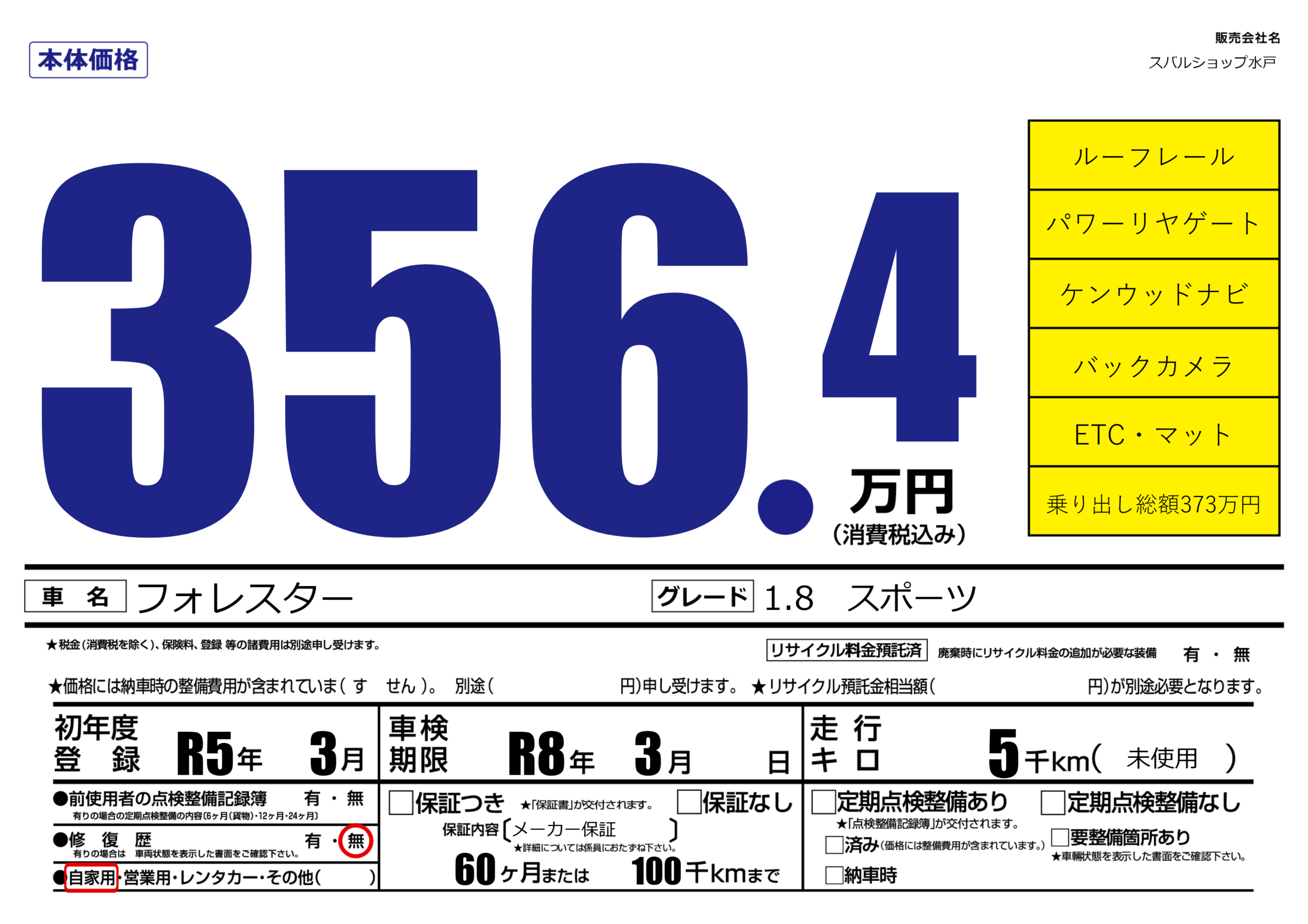 なし | 車検制限 | R8年3月---月 |