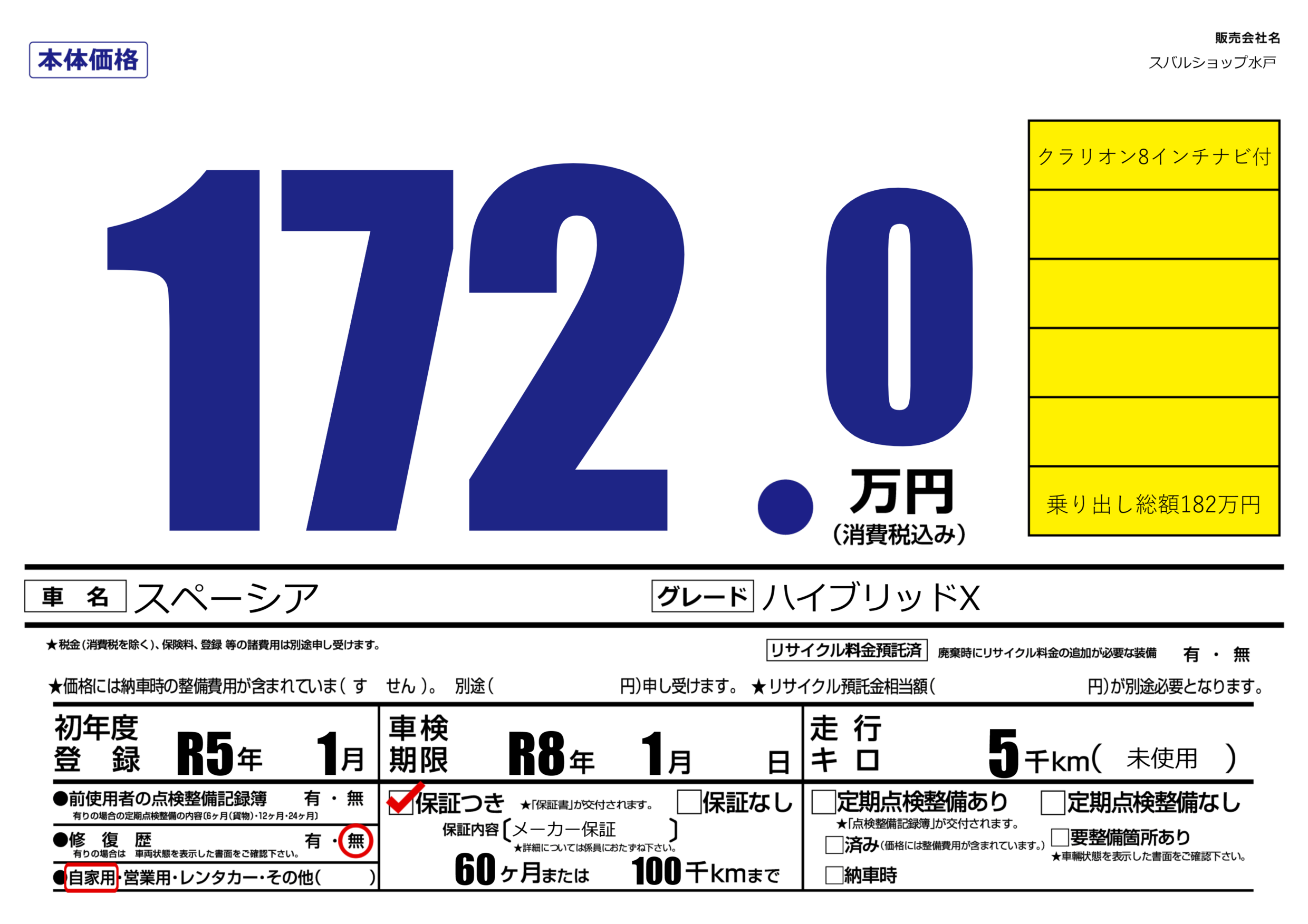 なし | 車検制限 | R8年1月---月 |