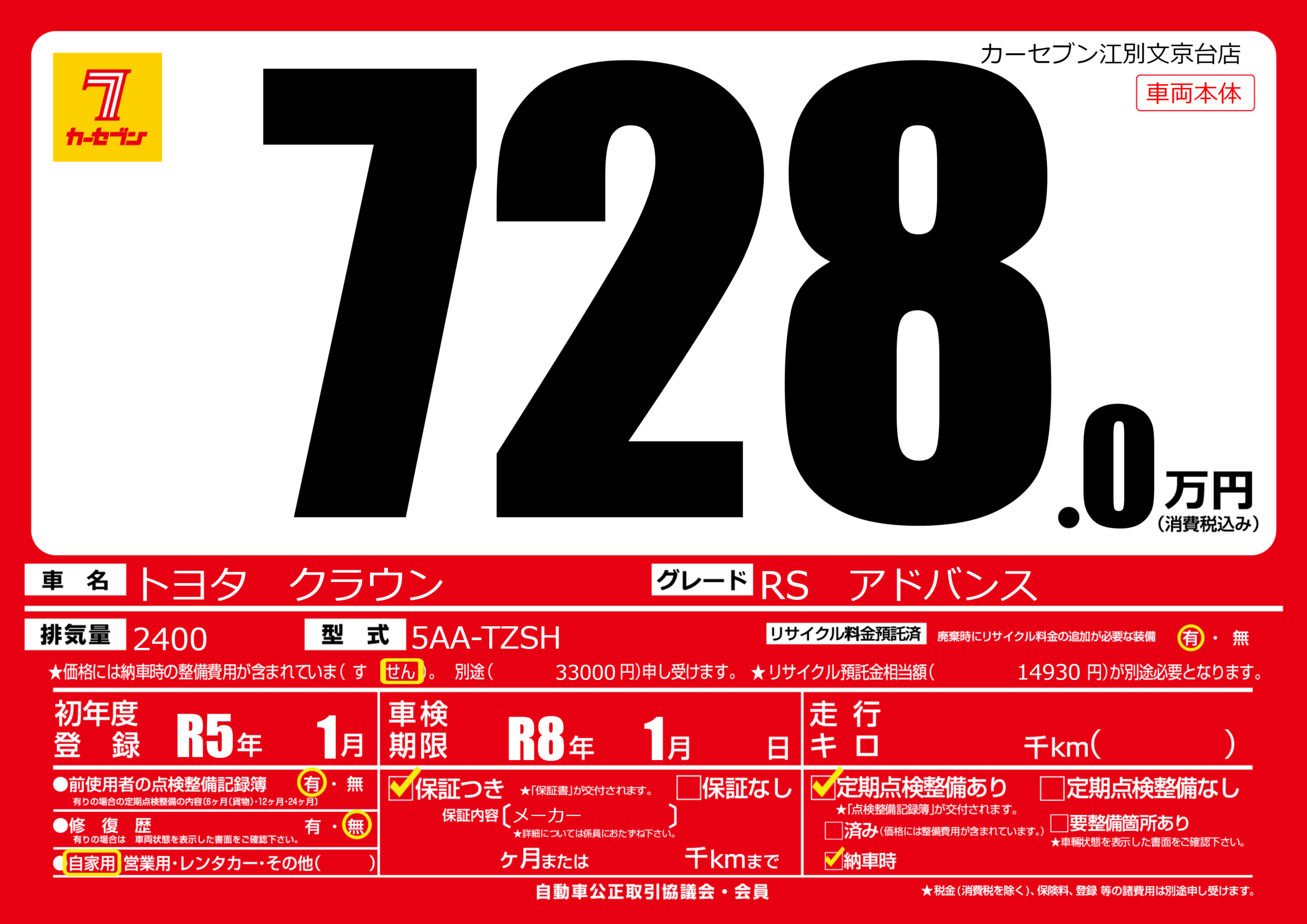 車検制限 | R8年1月---月 |