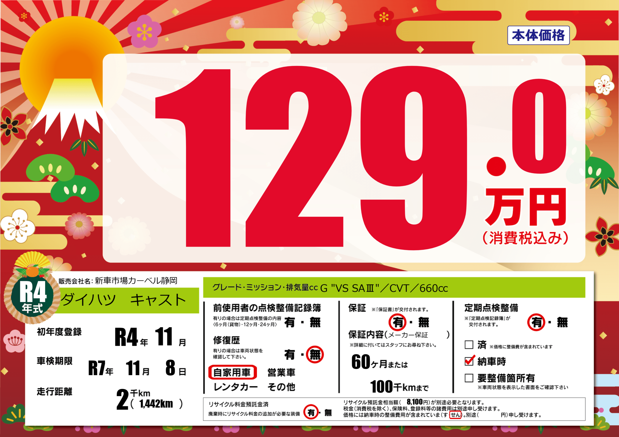 | 走行キロ | 0.2万km | 初年度登録 | R4年11月 |