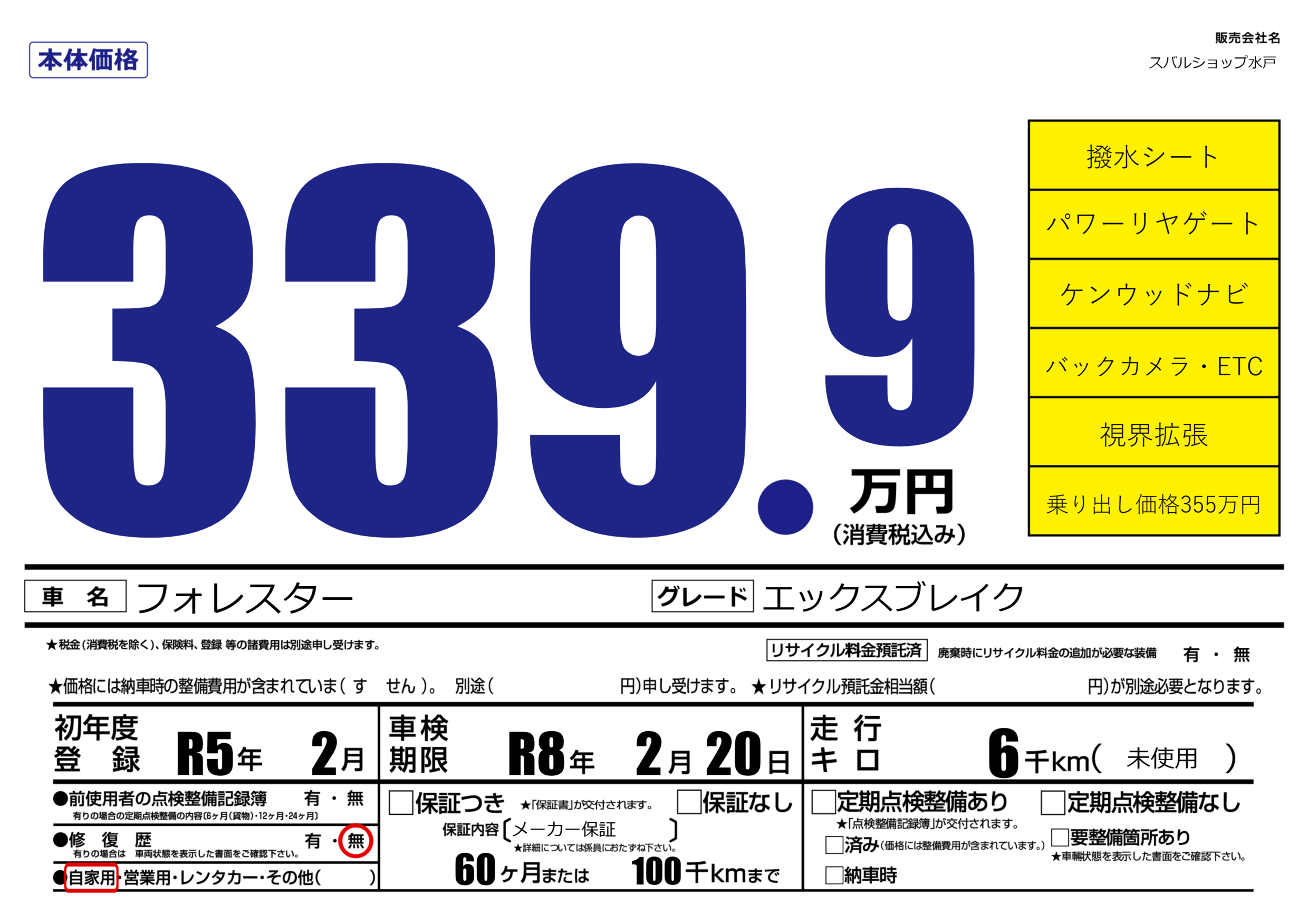 | 車検制限 | R8年 2月 20日 | ||