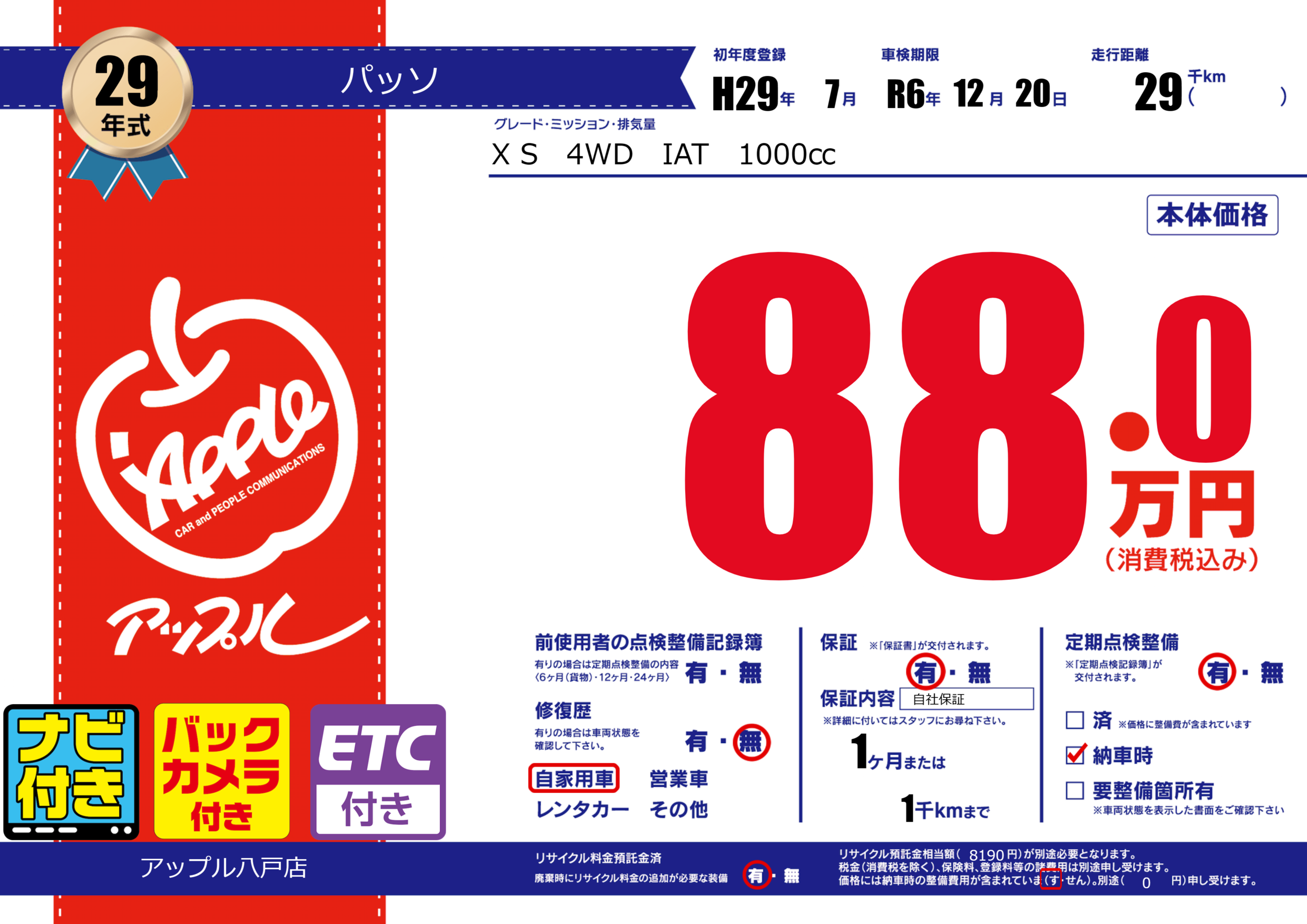 | 車名 | パッソ | グレード ミッション 排気量 |