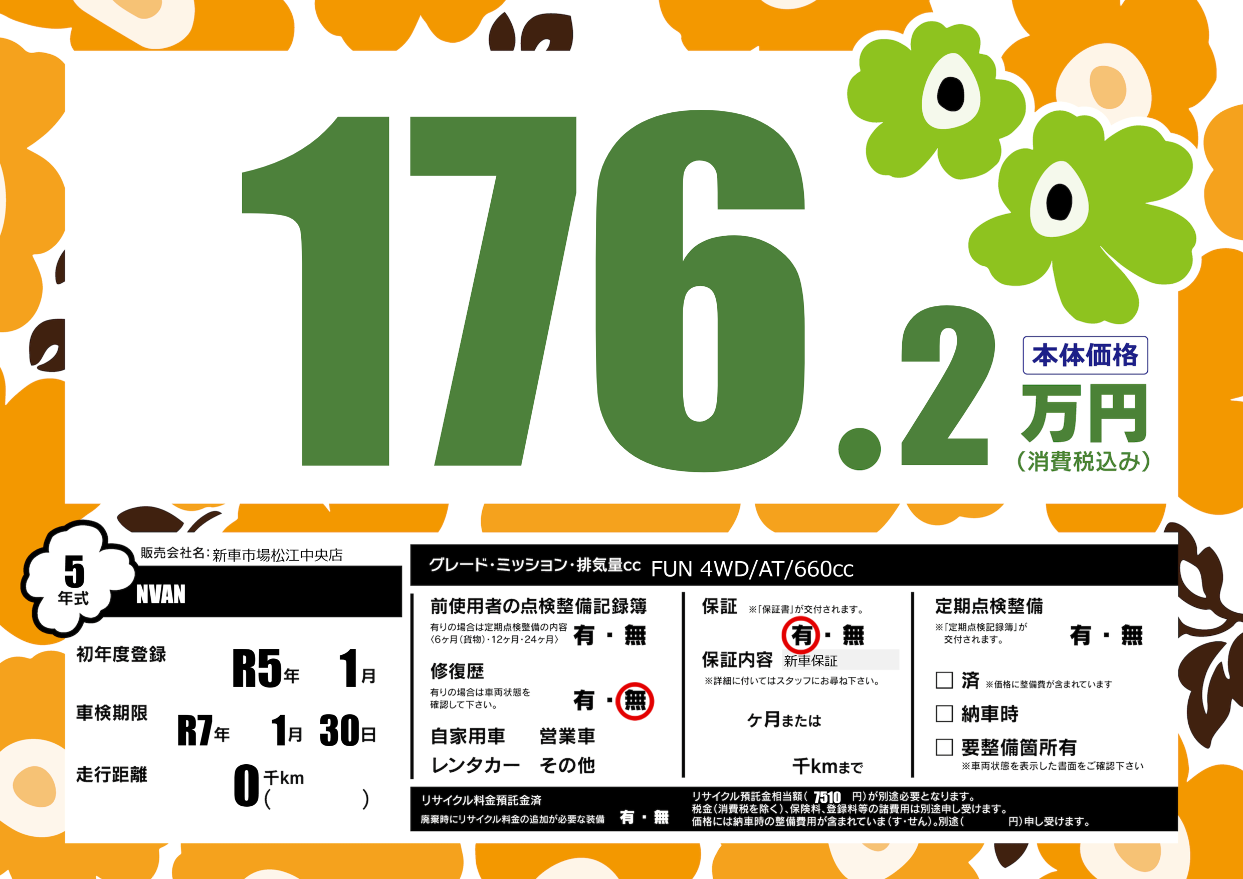 | 車名 | NVAN | グレード ミッション 排気量 |