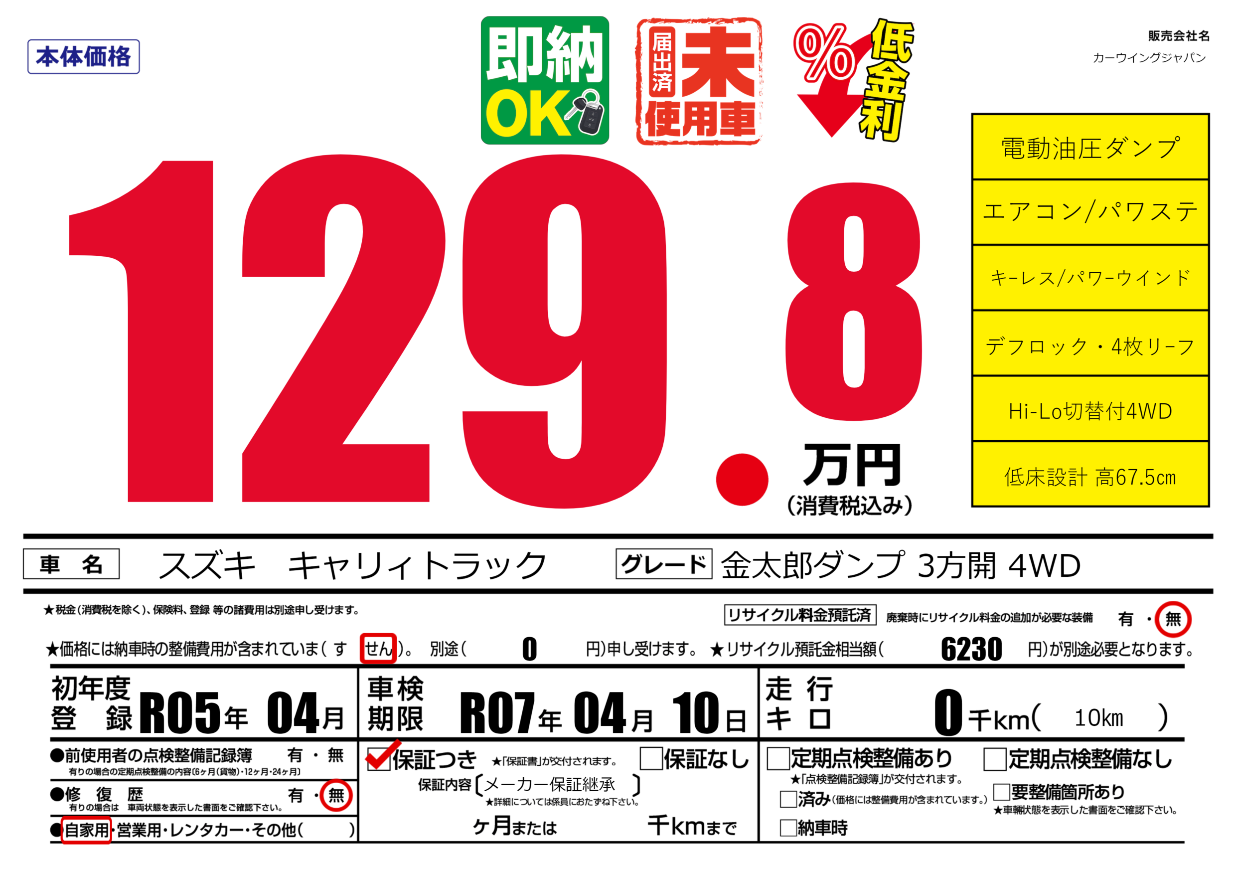 | 走行キロ | - | 初年度登録 | R05年04月 |