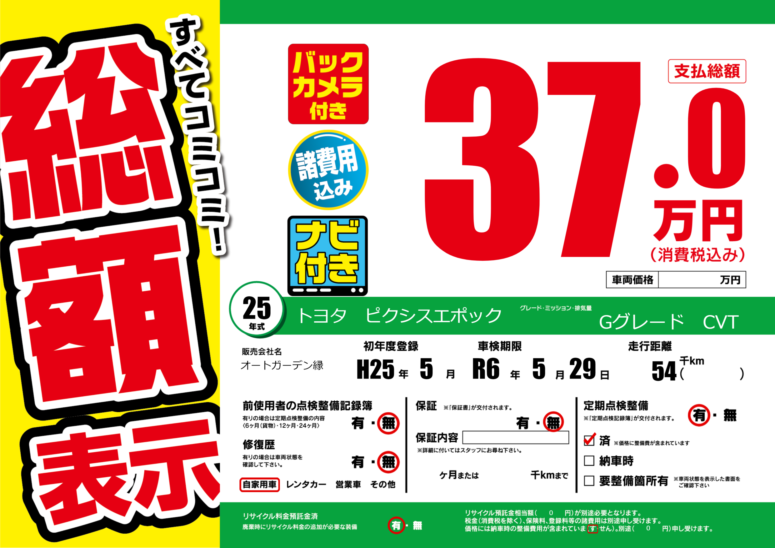 | 定期点検整備 | 定期点検整備あり 定期点検整備済み | ||