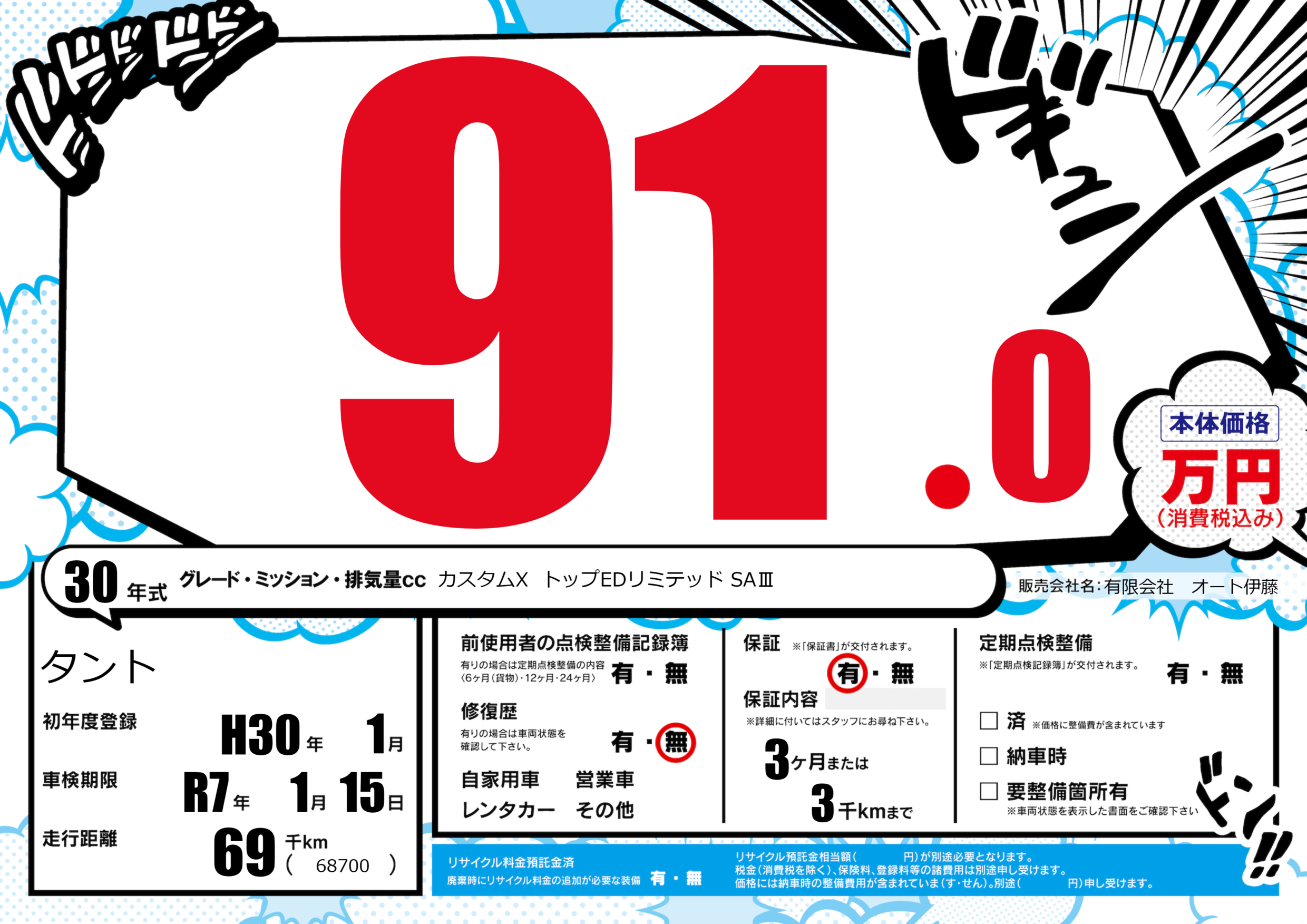 保証付き 保証内容(---) 3ヶ月または(3)千kmまで |