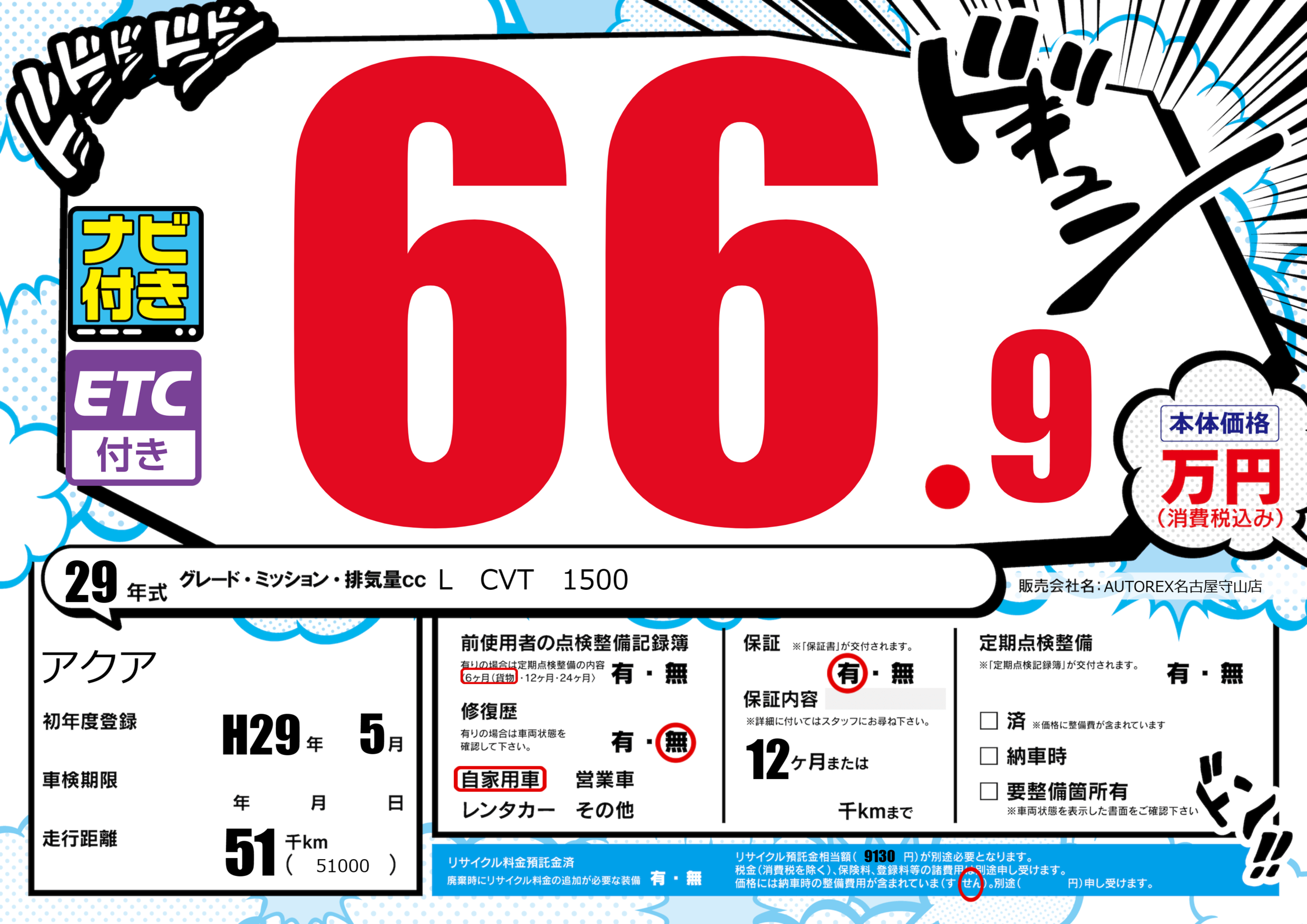 | 走行キロ | 5.1万km | 初年度登録 | H29年5月 |