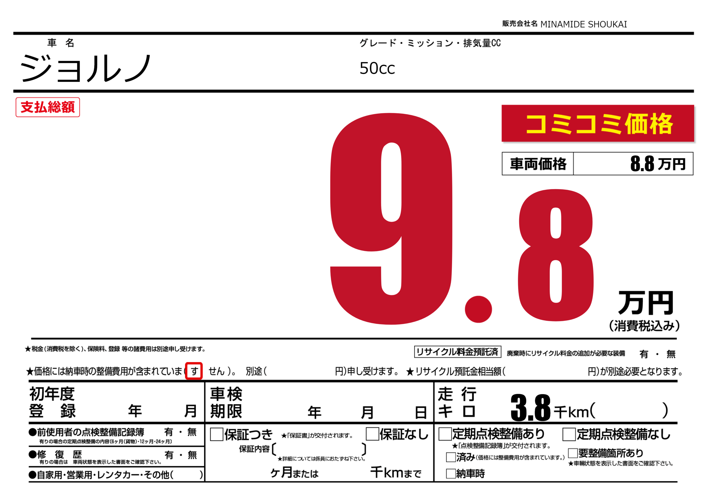 | 納車時の 整備費用 |