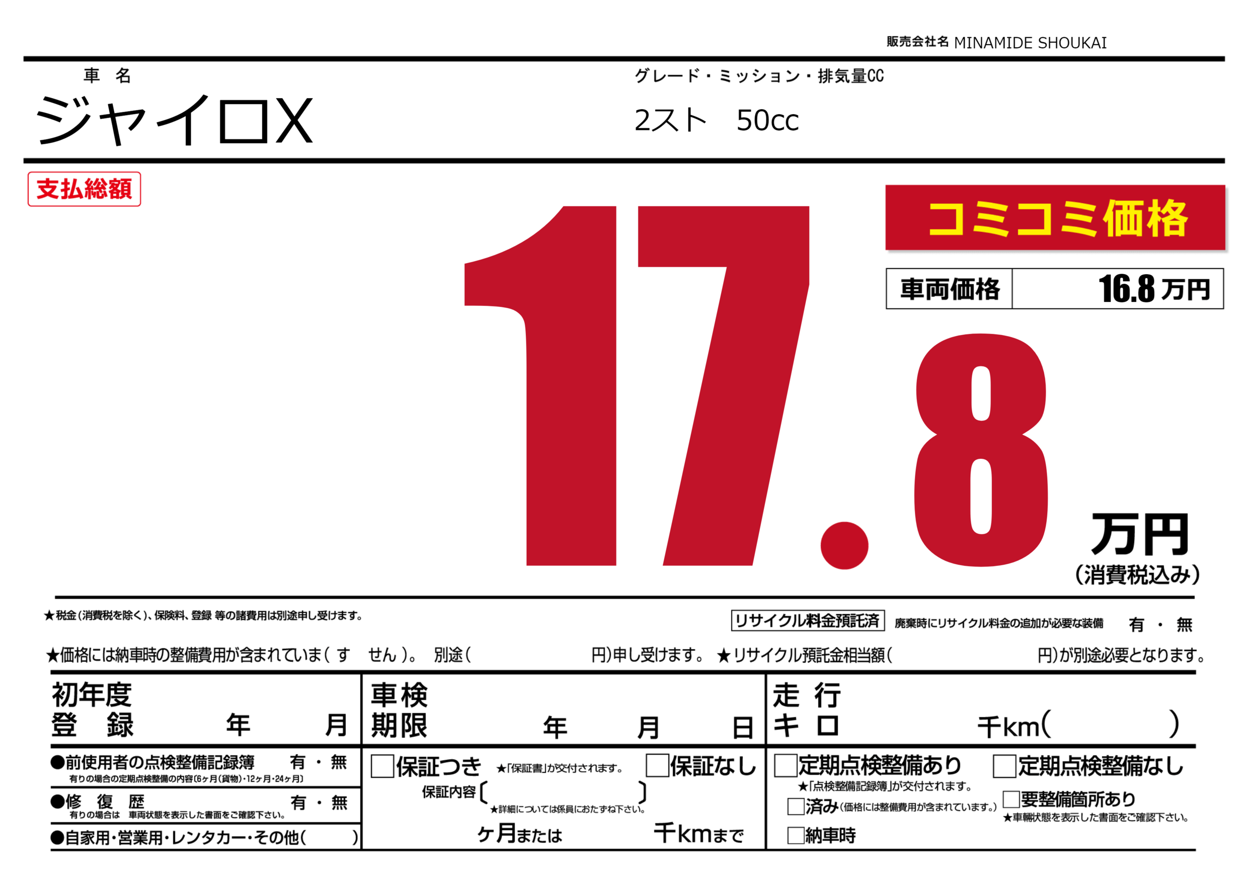 | 車名 | ジャイロX | グレード ミッション 排気量 |