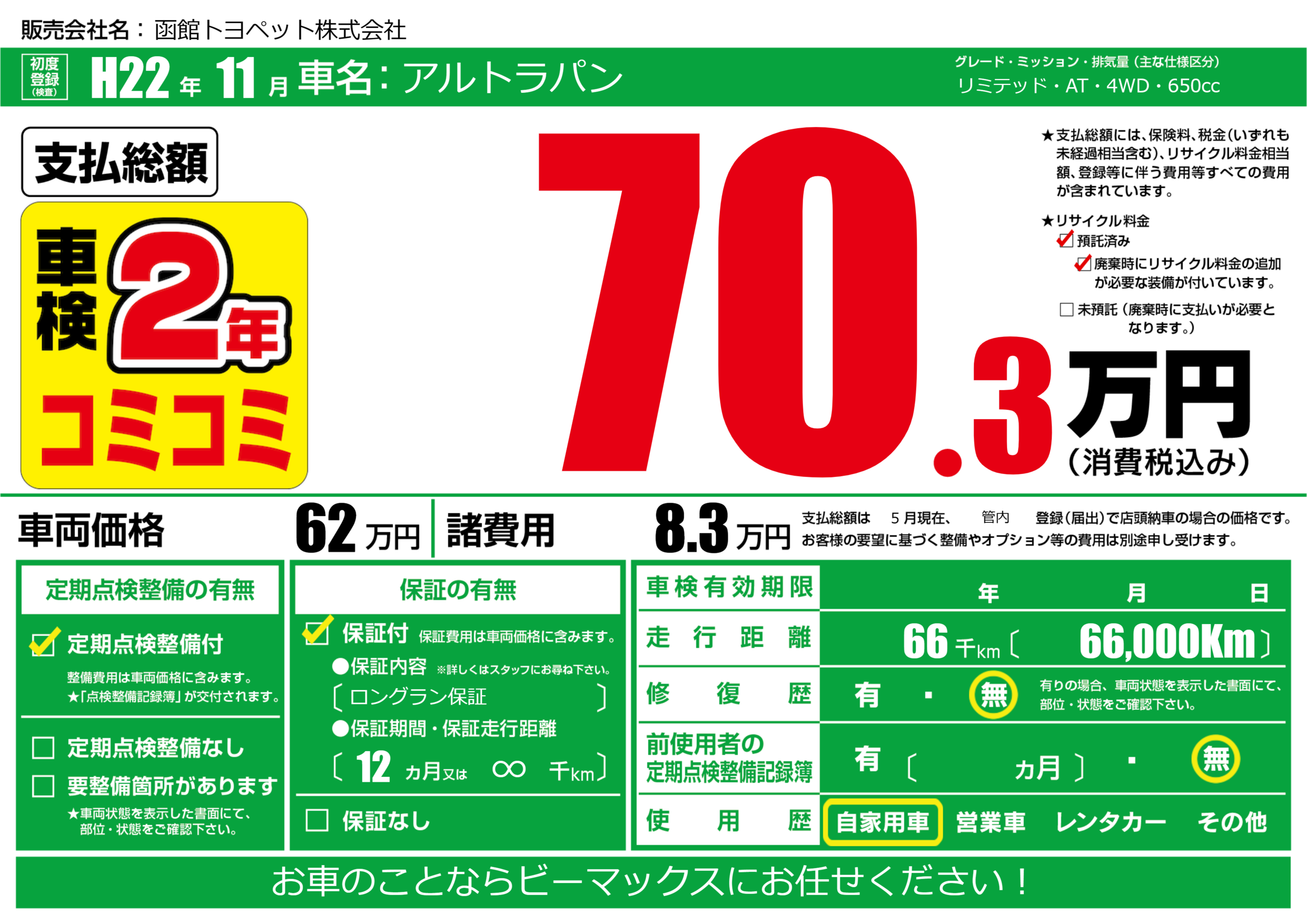 | 定期点検整備 | 定期点検整備あり | ||