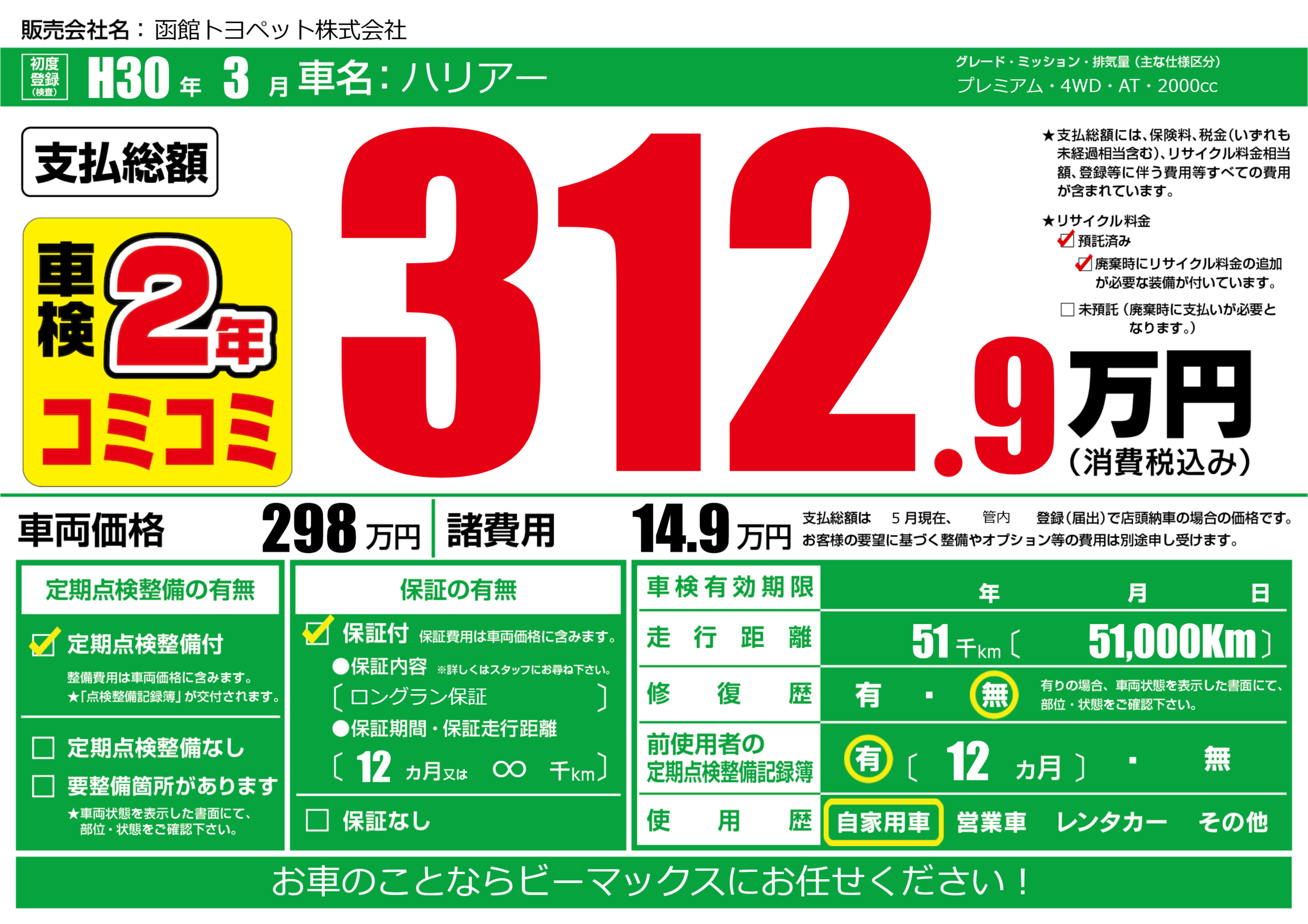 | 定期点検整備 | 定期点検整備あり | ||