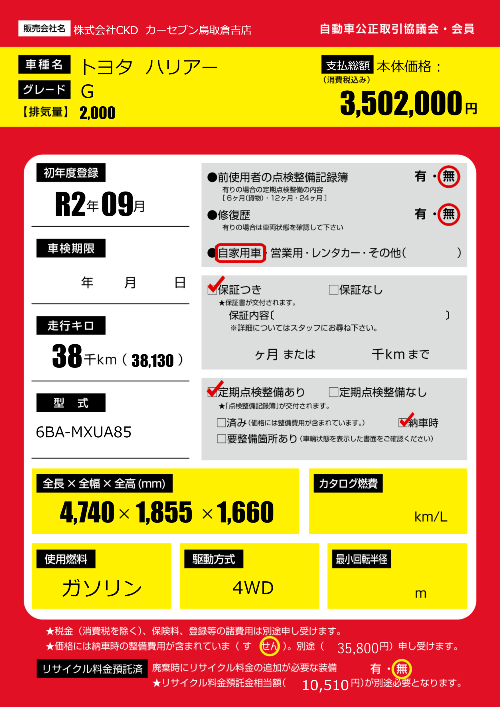 走行キロ 3.8万km