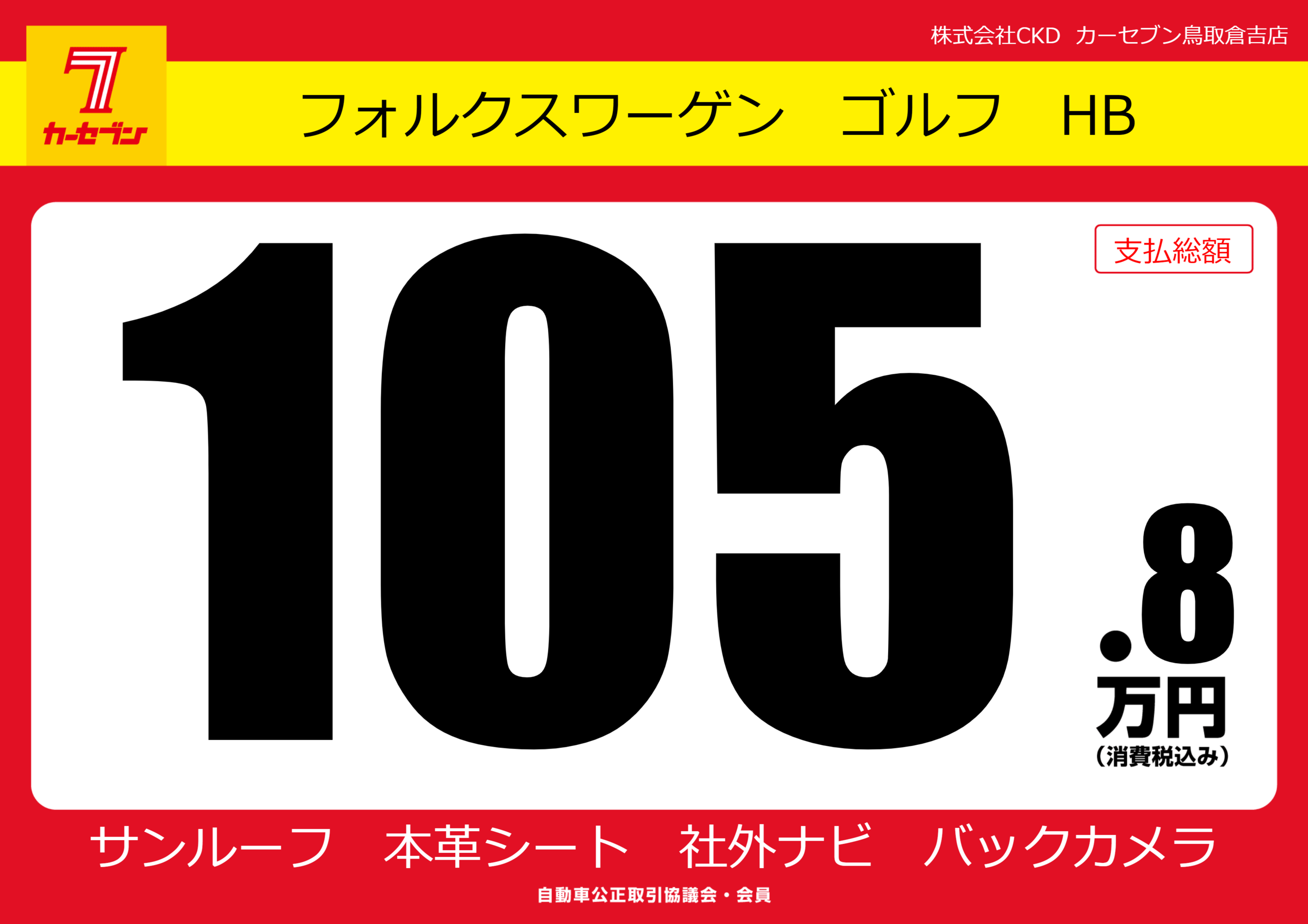 | 車名 | フォルクスワーゲン ゴルフ HB | グレード ミッション 排気量 |