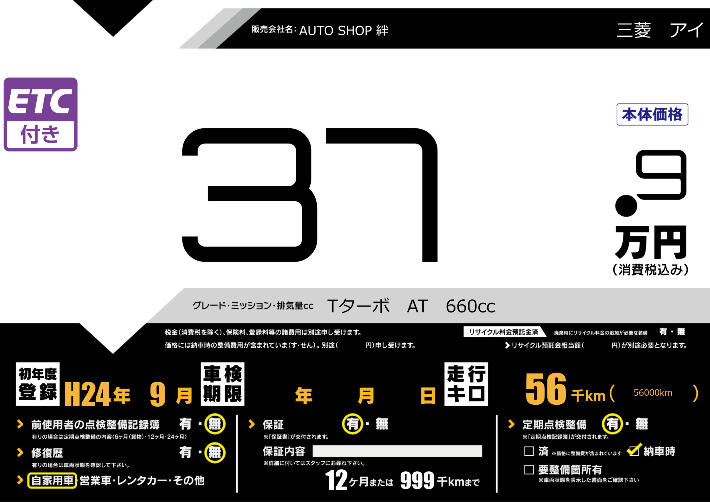 | 車名 | 三菱 アイ | グレード ミッション 排気量 |