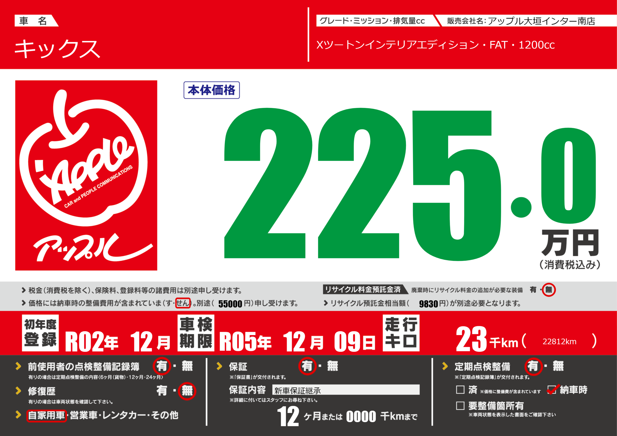 | 走行キロ | 2.3万km | 初年度登録 | R02年12月 |