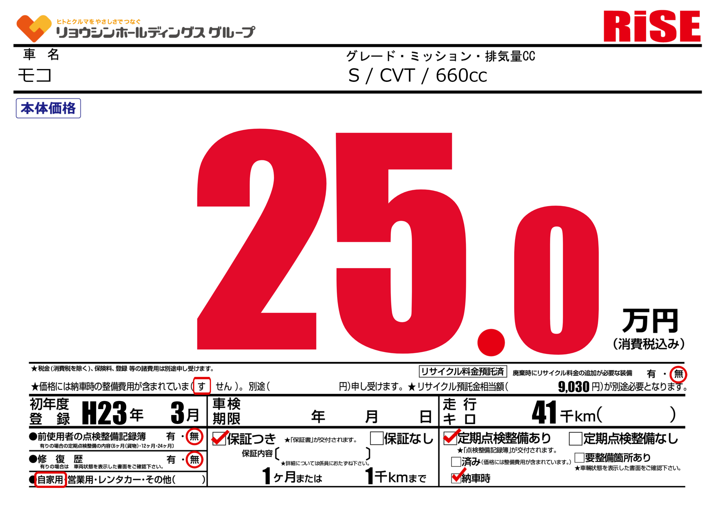| 定期点検整備 | 定期点検整備あり 納車時あり | ||