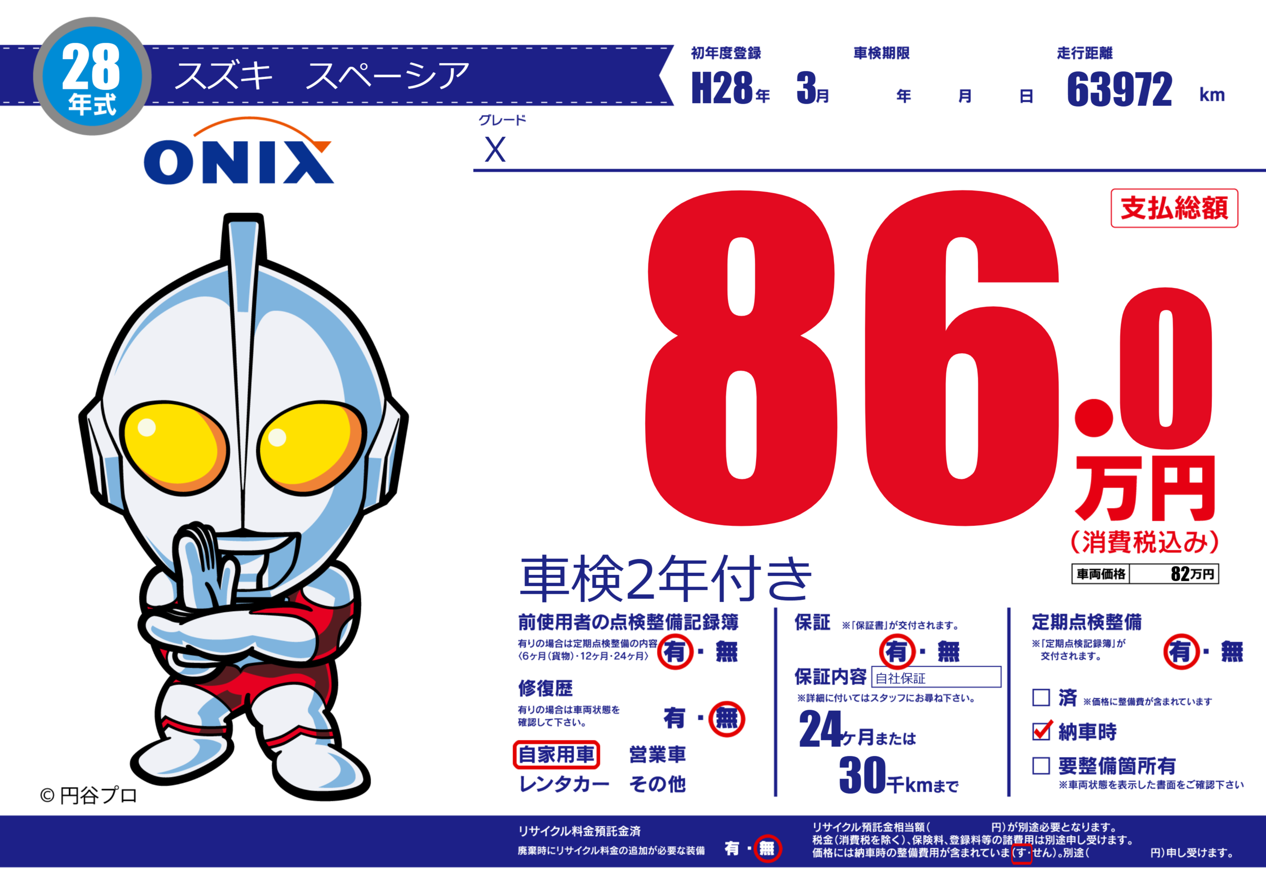 保証付き 保証内容(自社保証) 24ヶ月または(30)千kmまで |
