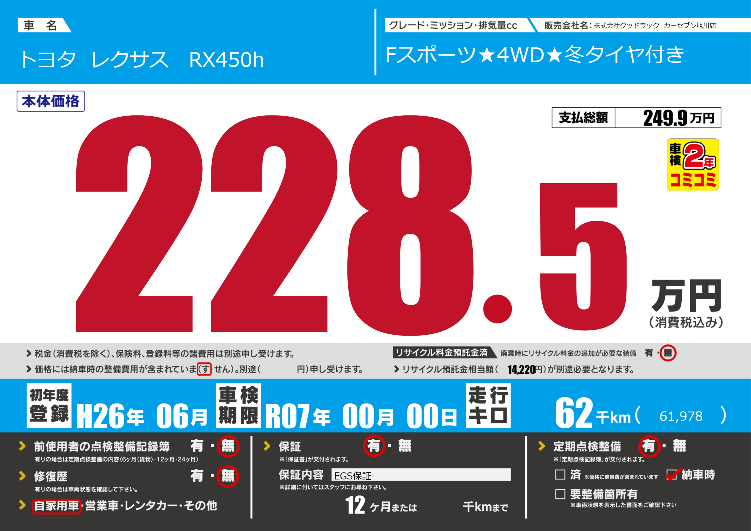 | 車検制限 | R07年 00月 00日 | ||