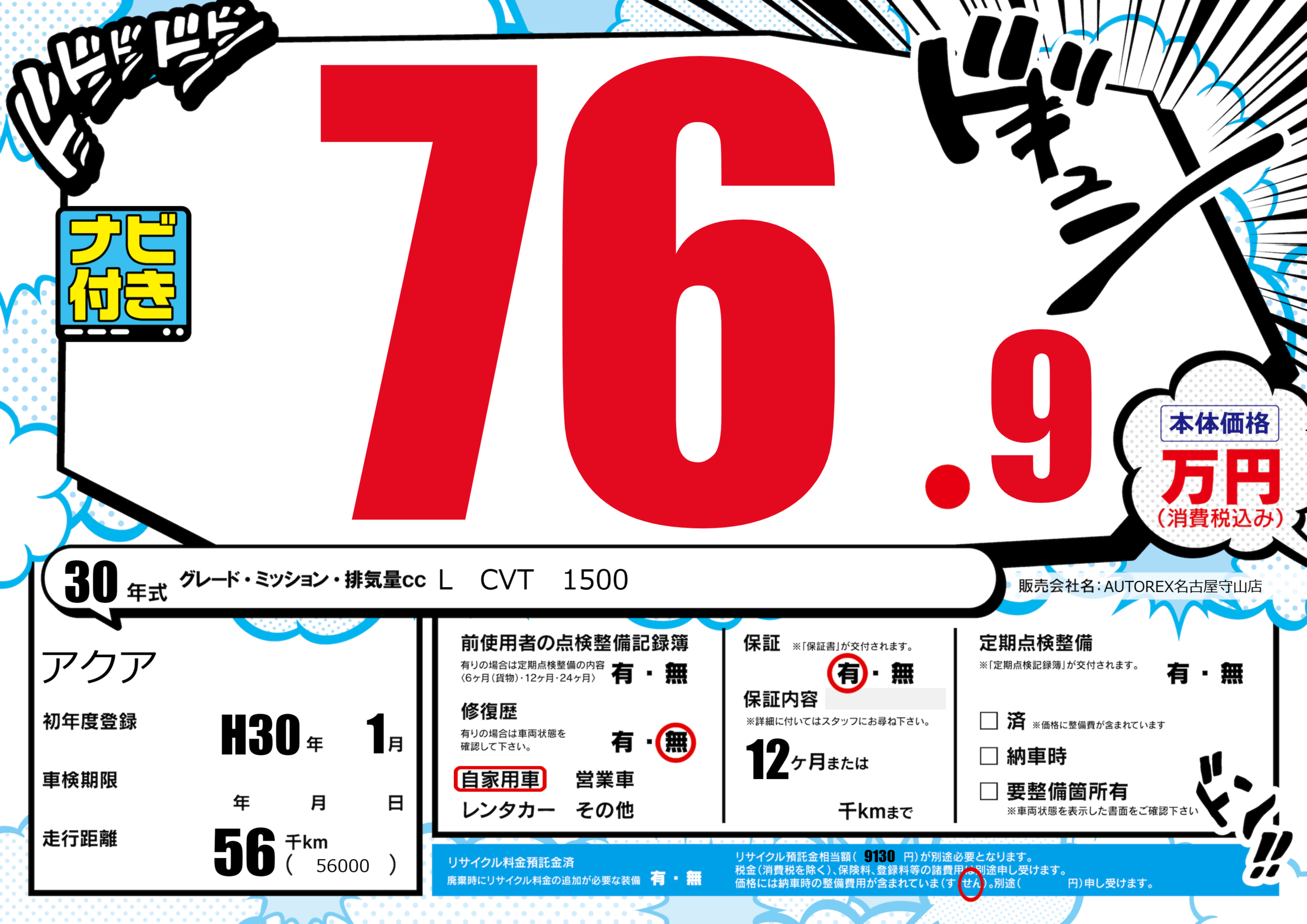 保証付き 保証内容(---) 12ヶ月または()千kmまで |