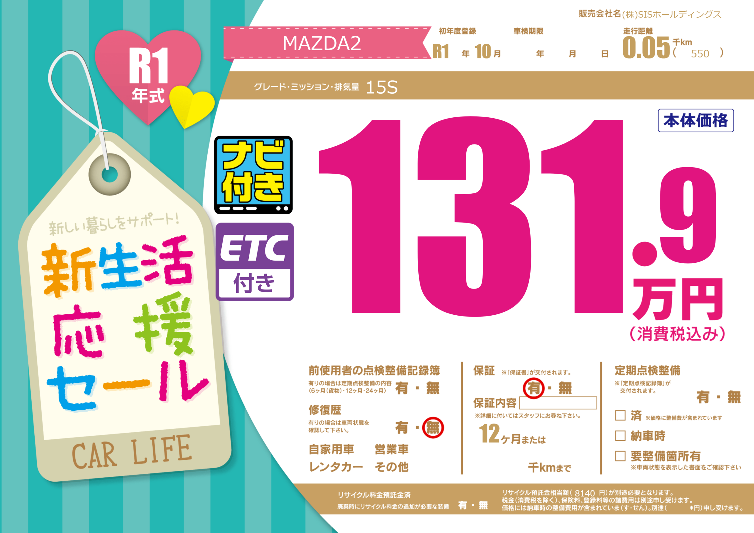 | 車名 | MAZDA2 | グレード ミッション 排気量 |