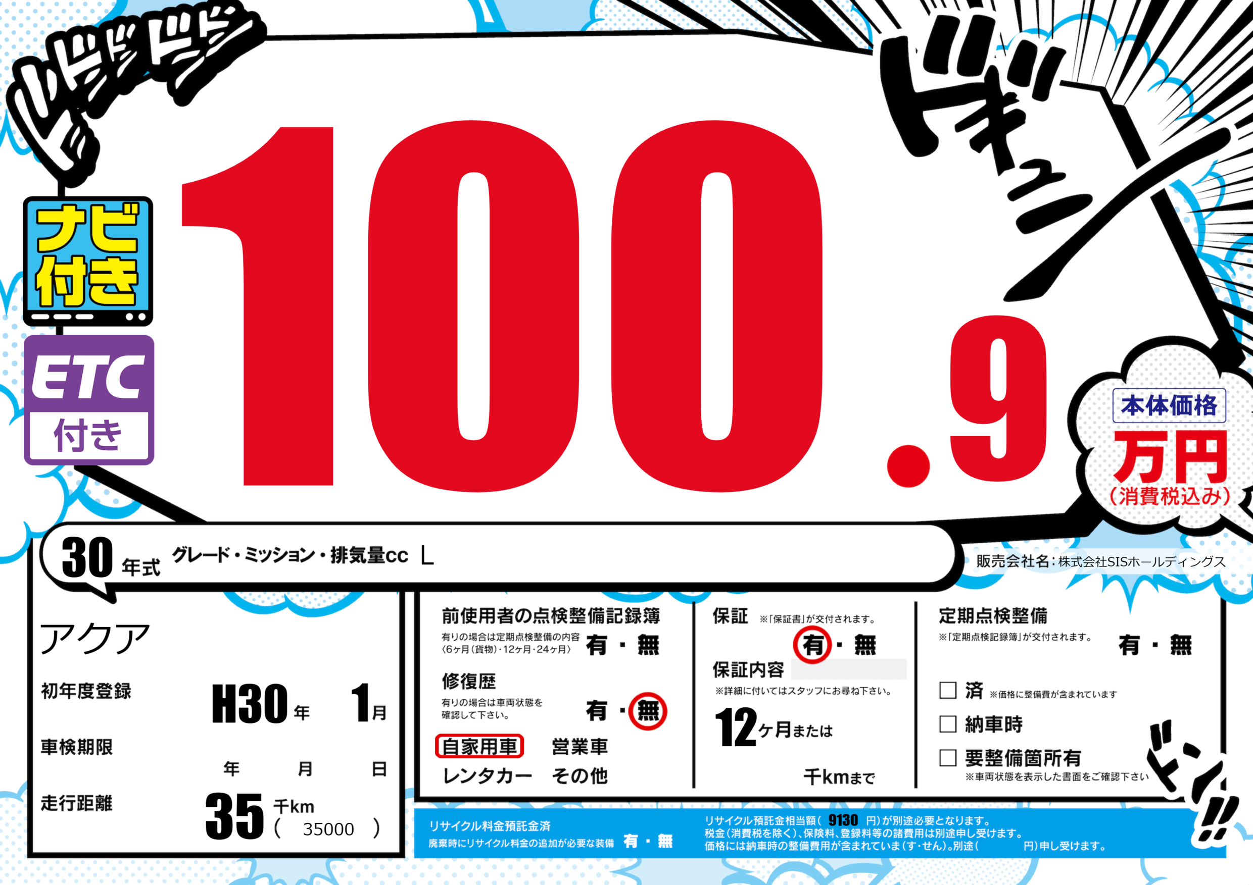 保証付き 保証内容(---) 12ヶ月または()千kmまで |
