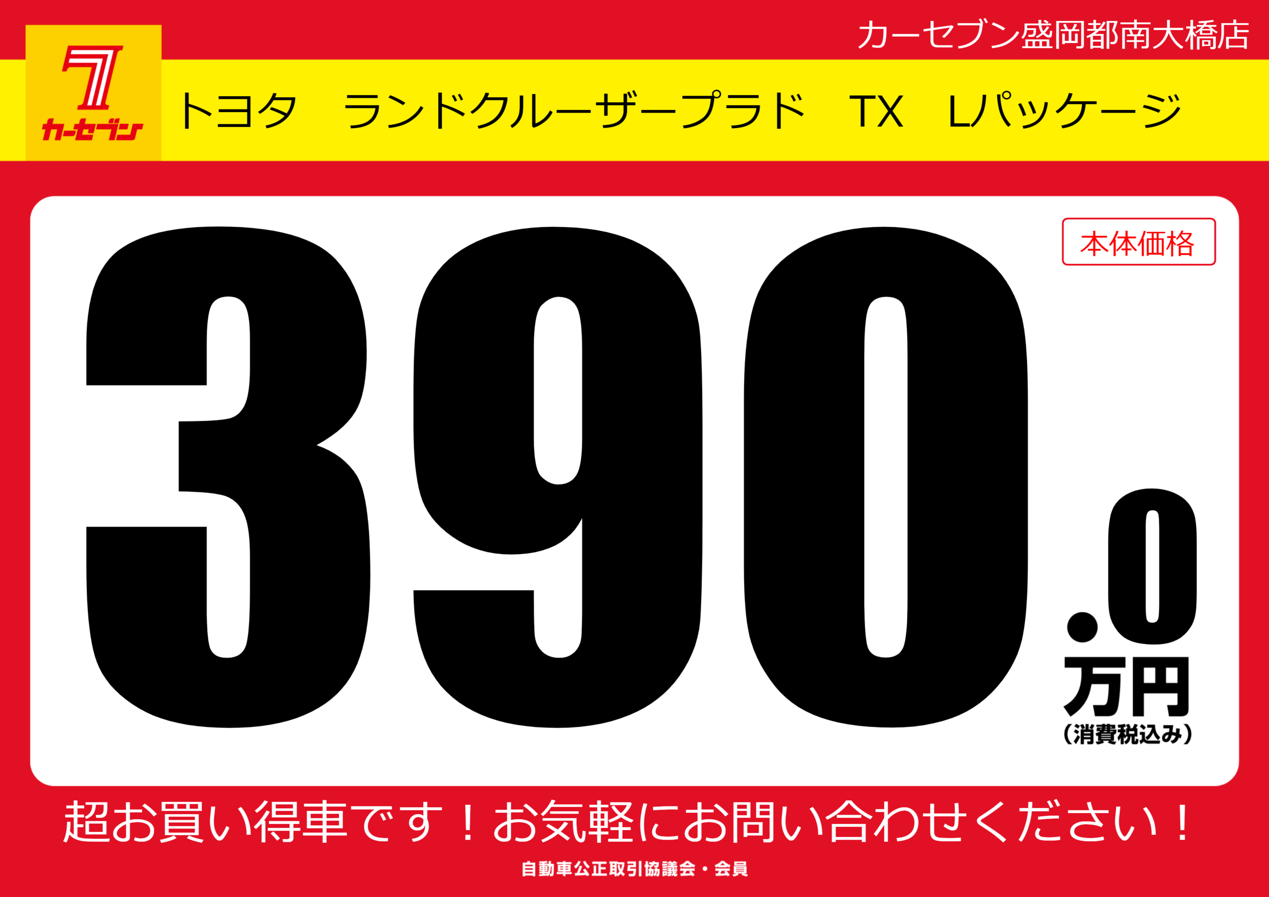 | 車名 | トヨタ ランドクルーザープラド TX Lパッケージ | グレード ミッション 排気量 |