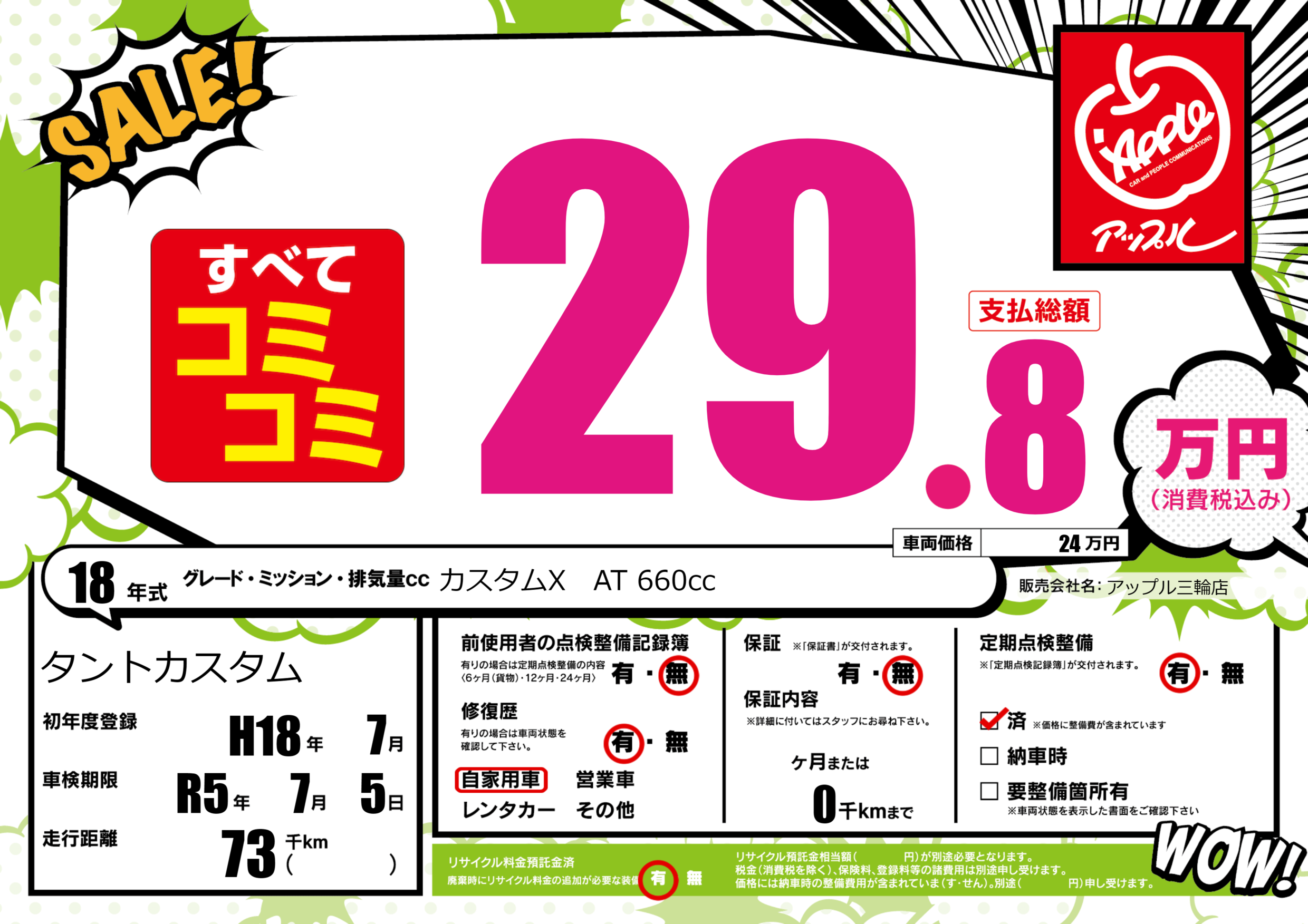 | 定期点検整備 | 定期点検整備あり 定期点検整備済み | ||