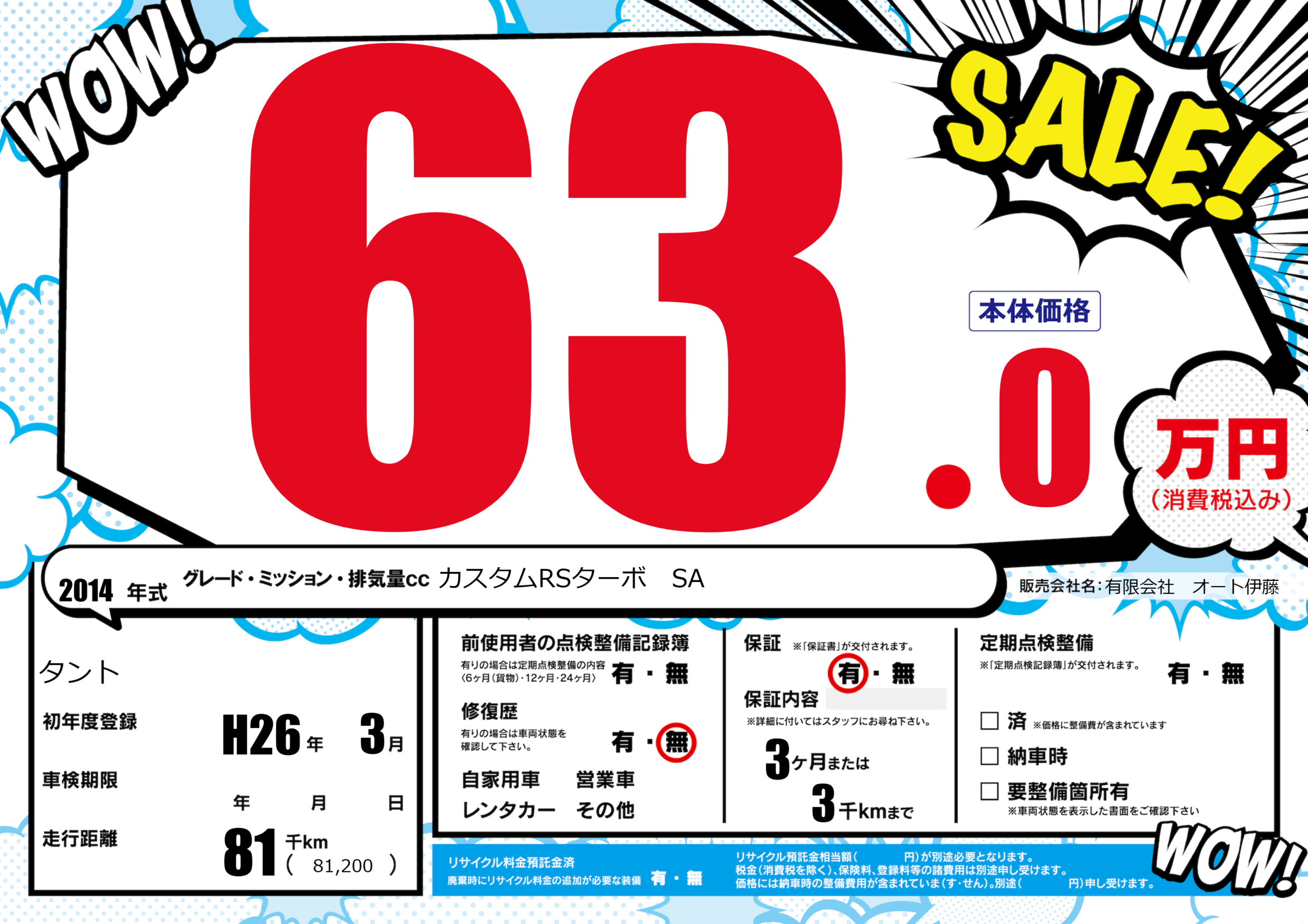 保証付き 保証内容(---) 3ヶ月または(3)千kmまで |