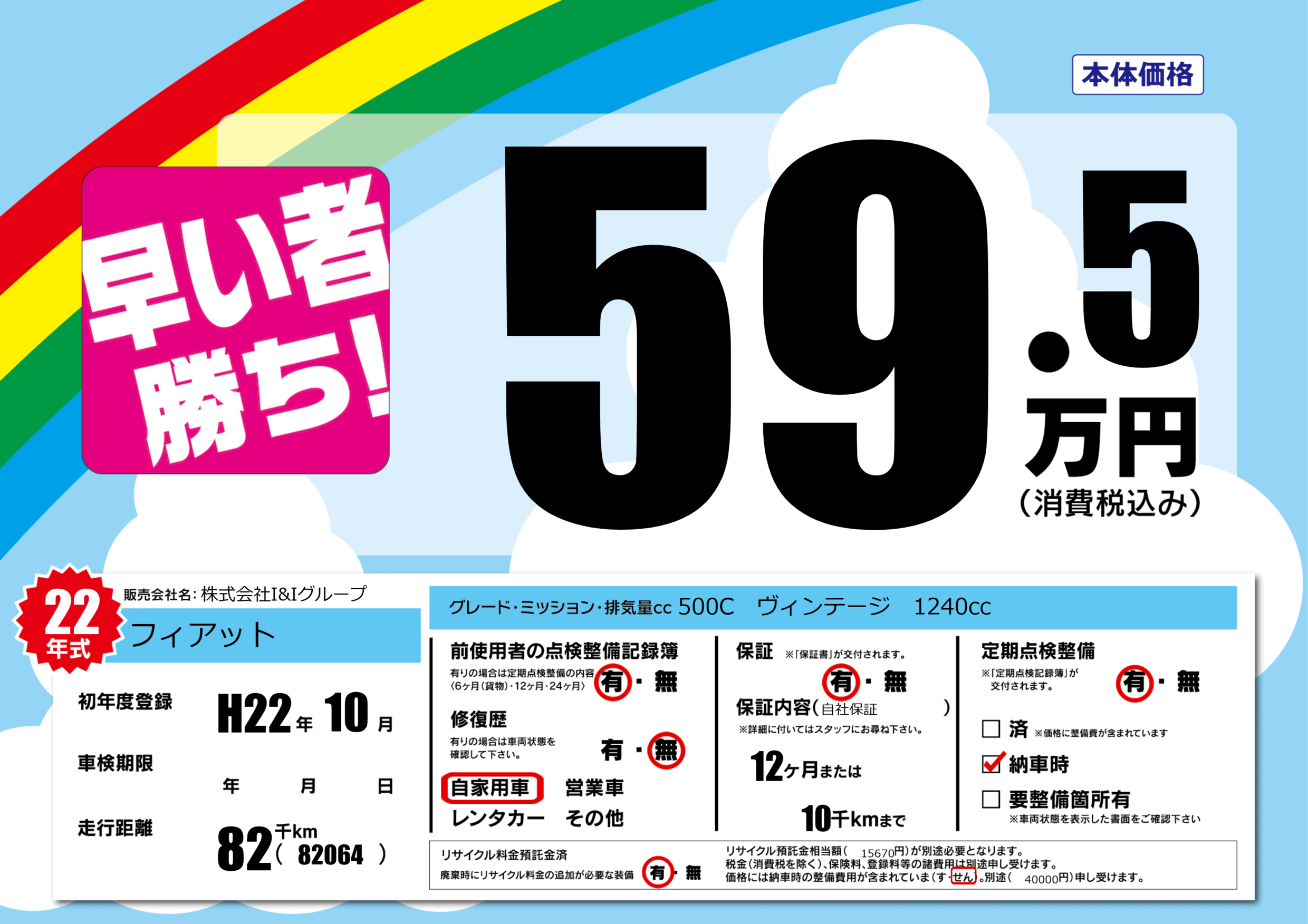 | 車名 | フィアット | グレード ミッション 排気量 |
