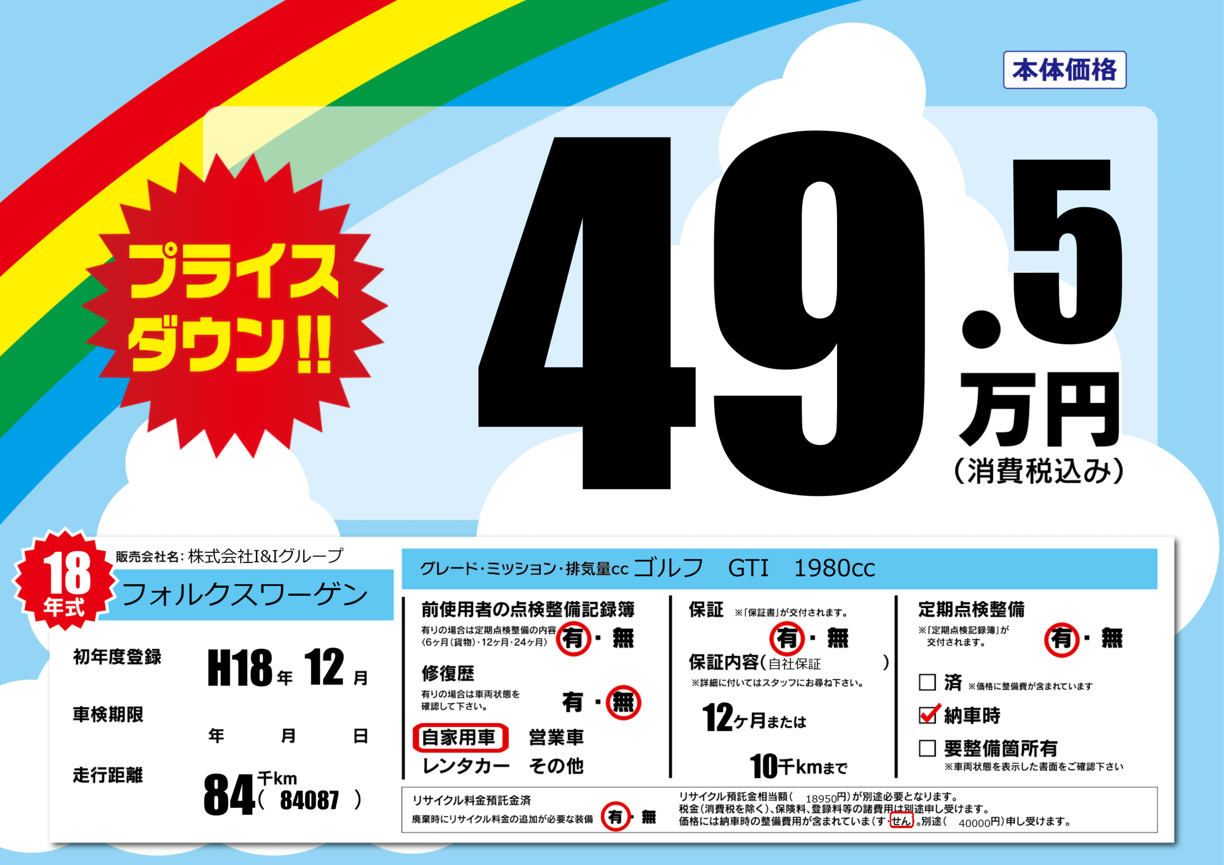 | 車名 | フォルクスワーゲン | グレード ミッション 排気量 |