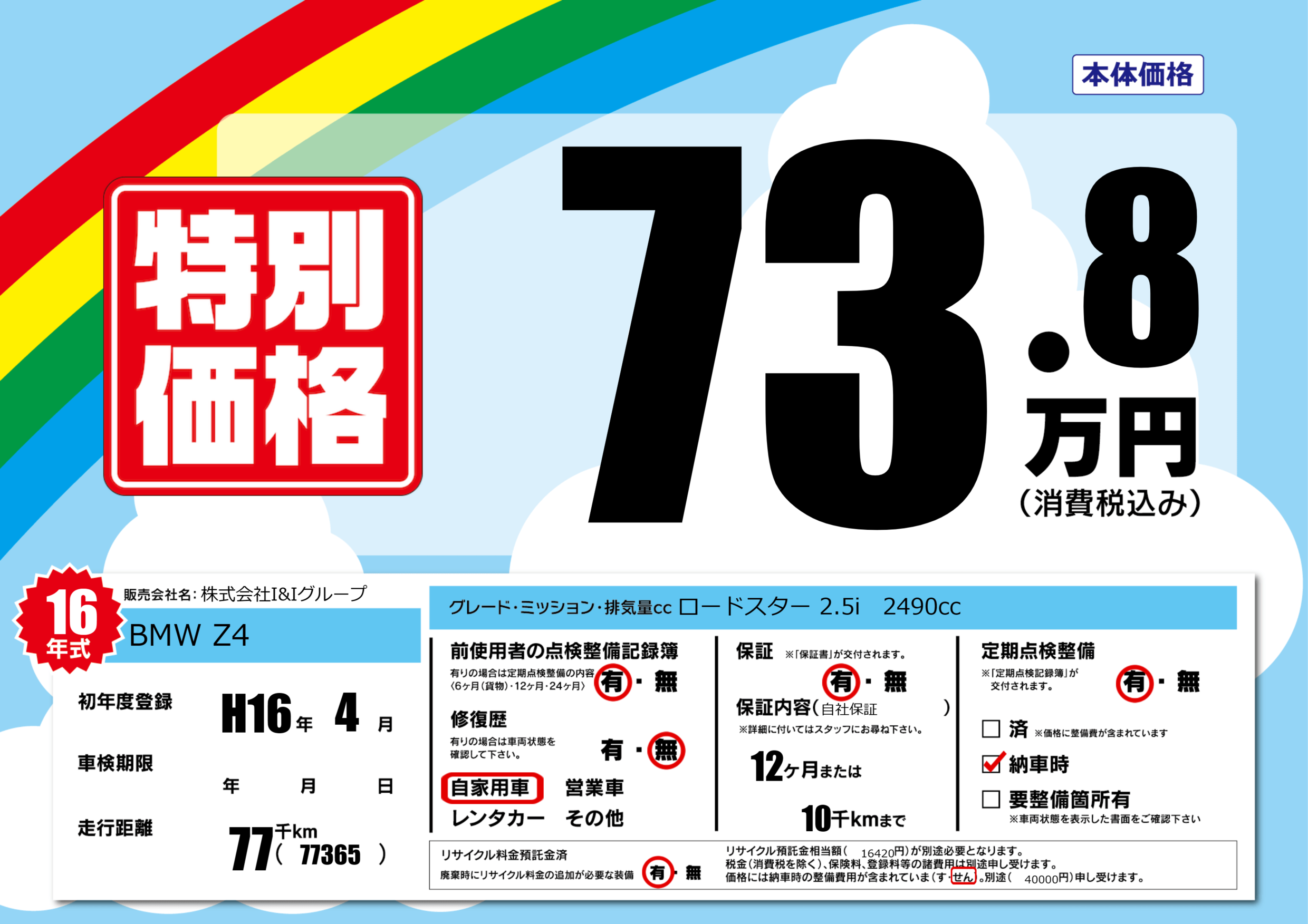 | 車名 | BMW Z4 | グレード ミッション 排気量 |