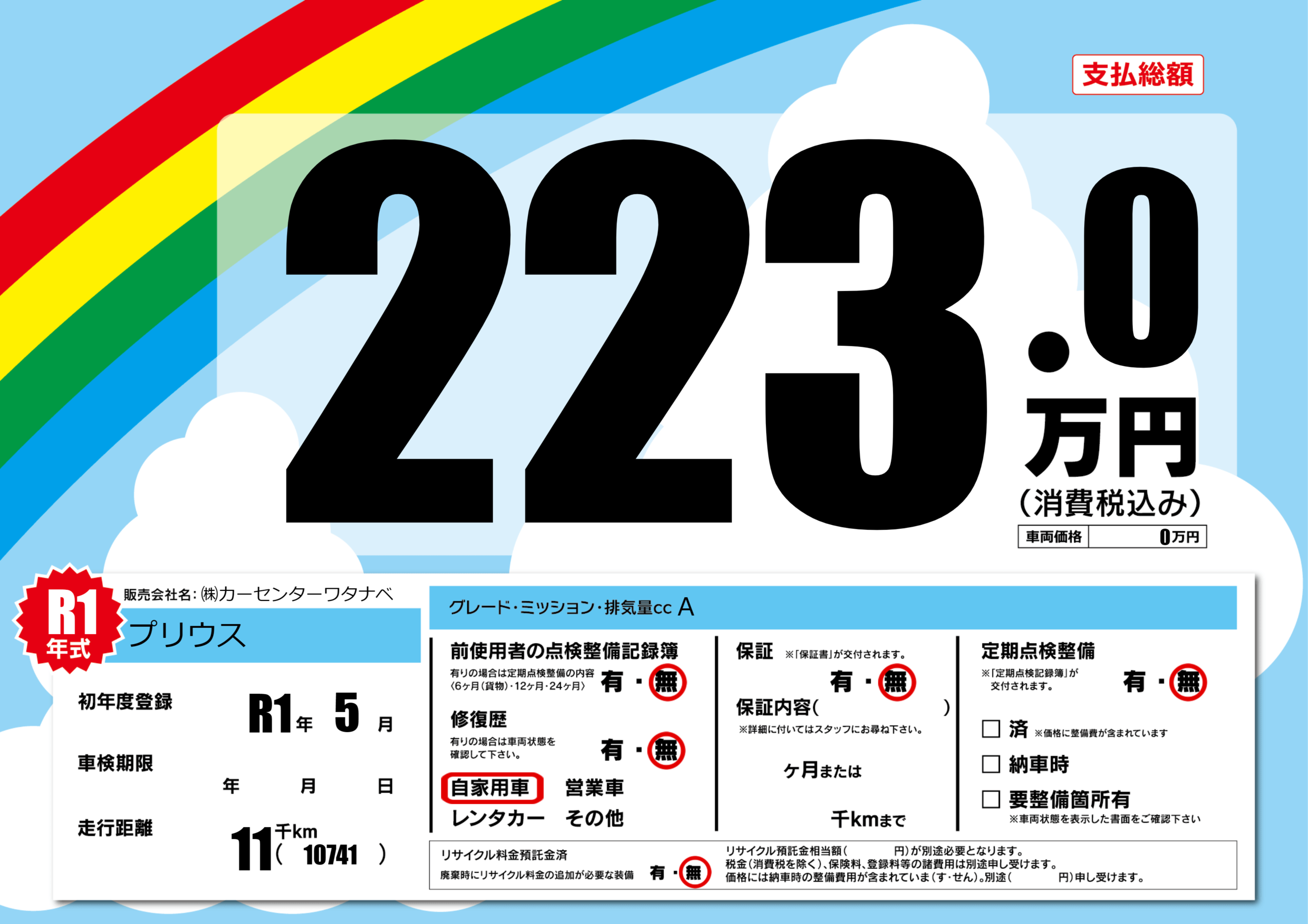 | 車検制限 | - 年 - 月 - 日 | ||