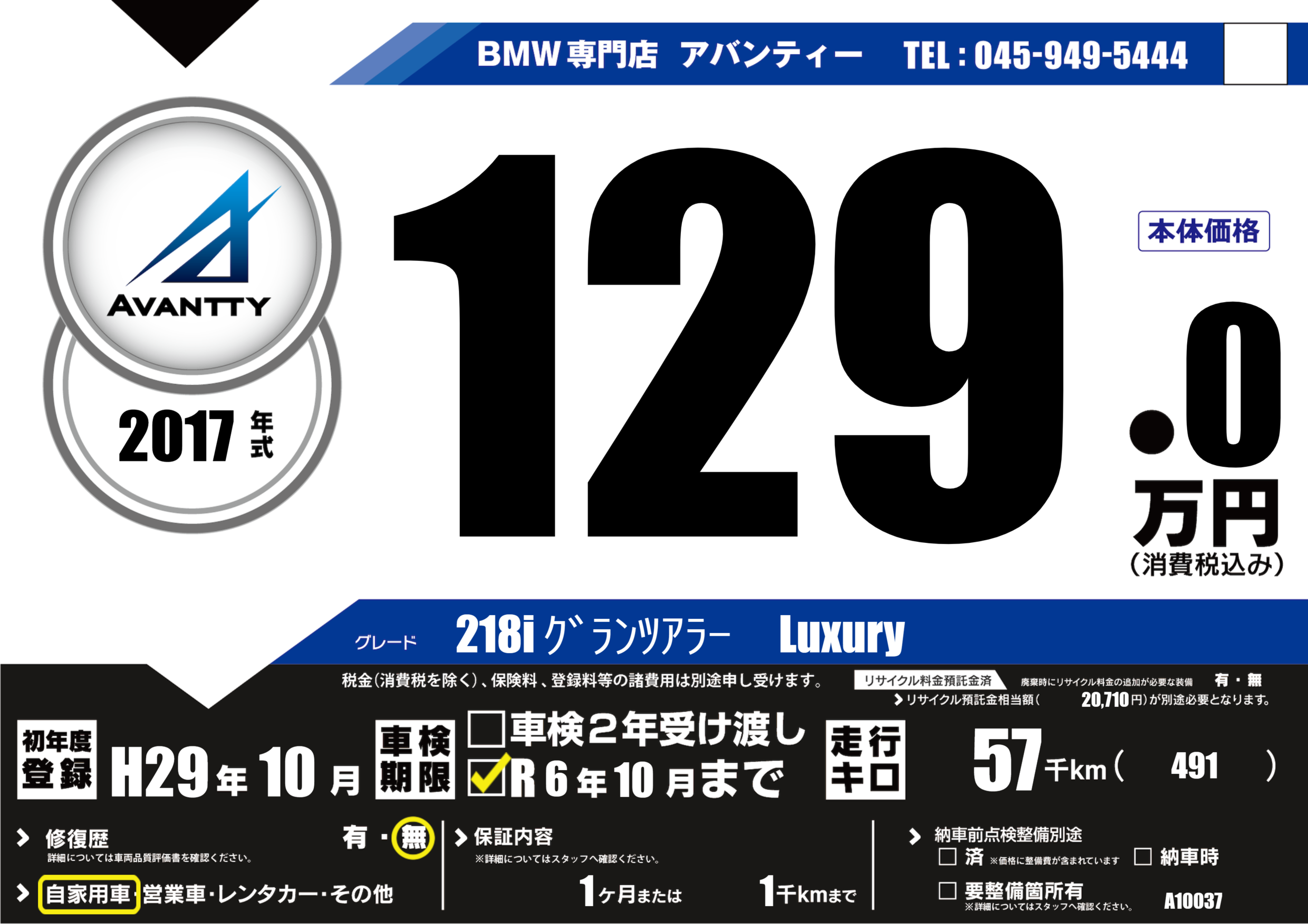 | 走行キロ | 5.7万km | 初年度登録 | H29年10月 |