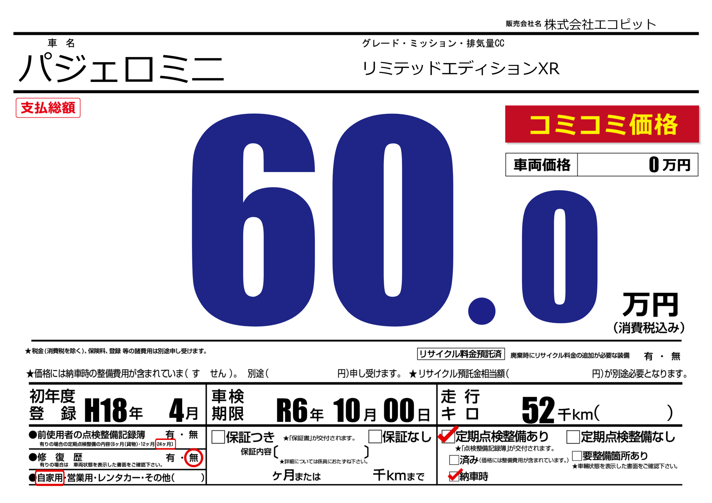 なし | 車検制限 | R6年10月00月 |