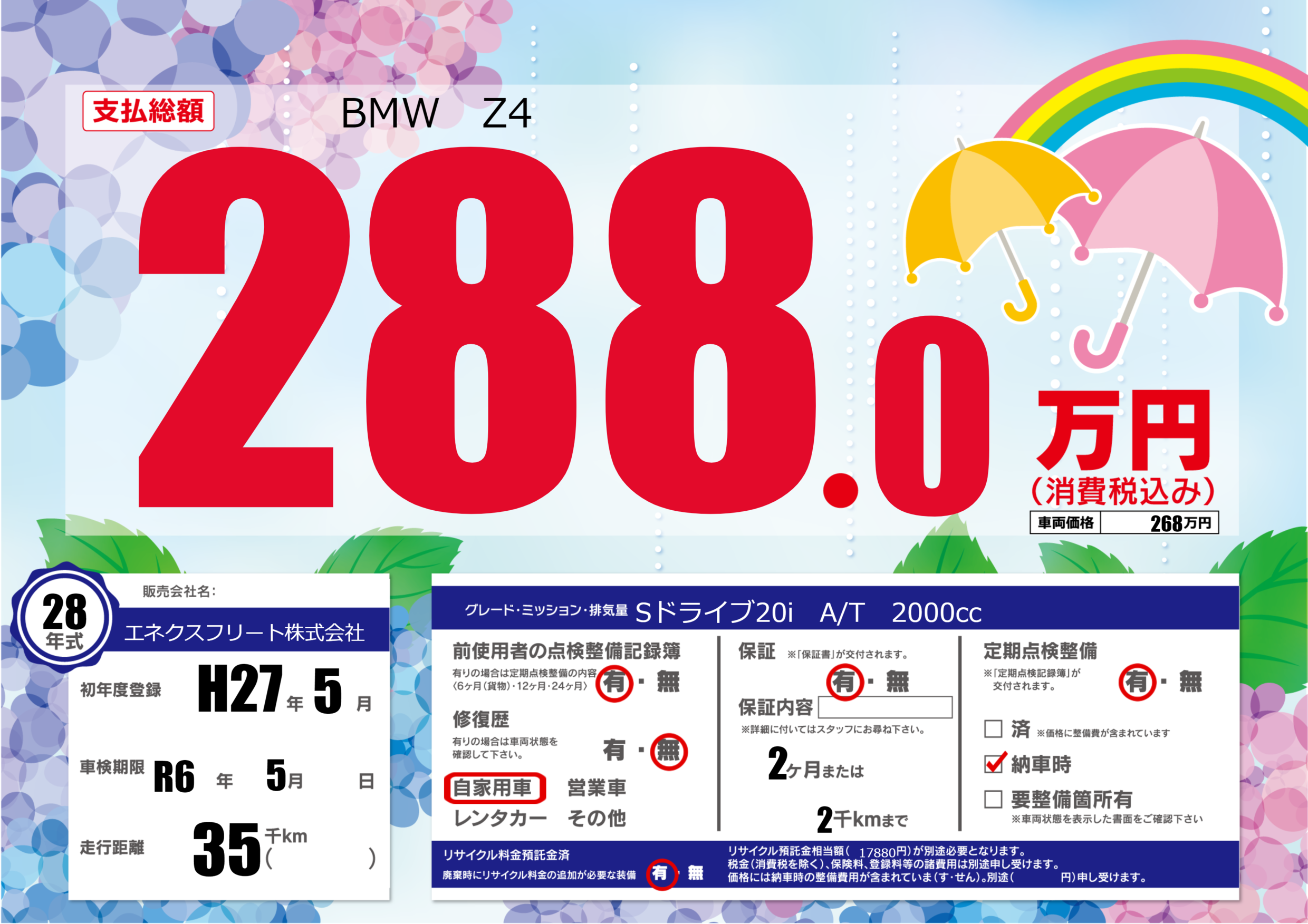 | 車名 | BMW Z4 | グレード ミッション 排気量 |