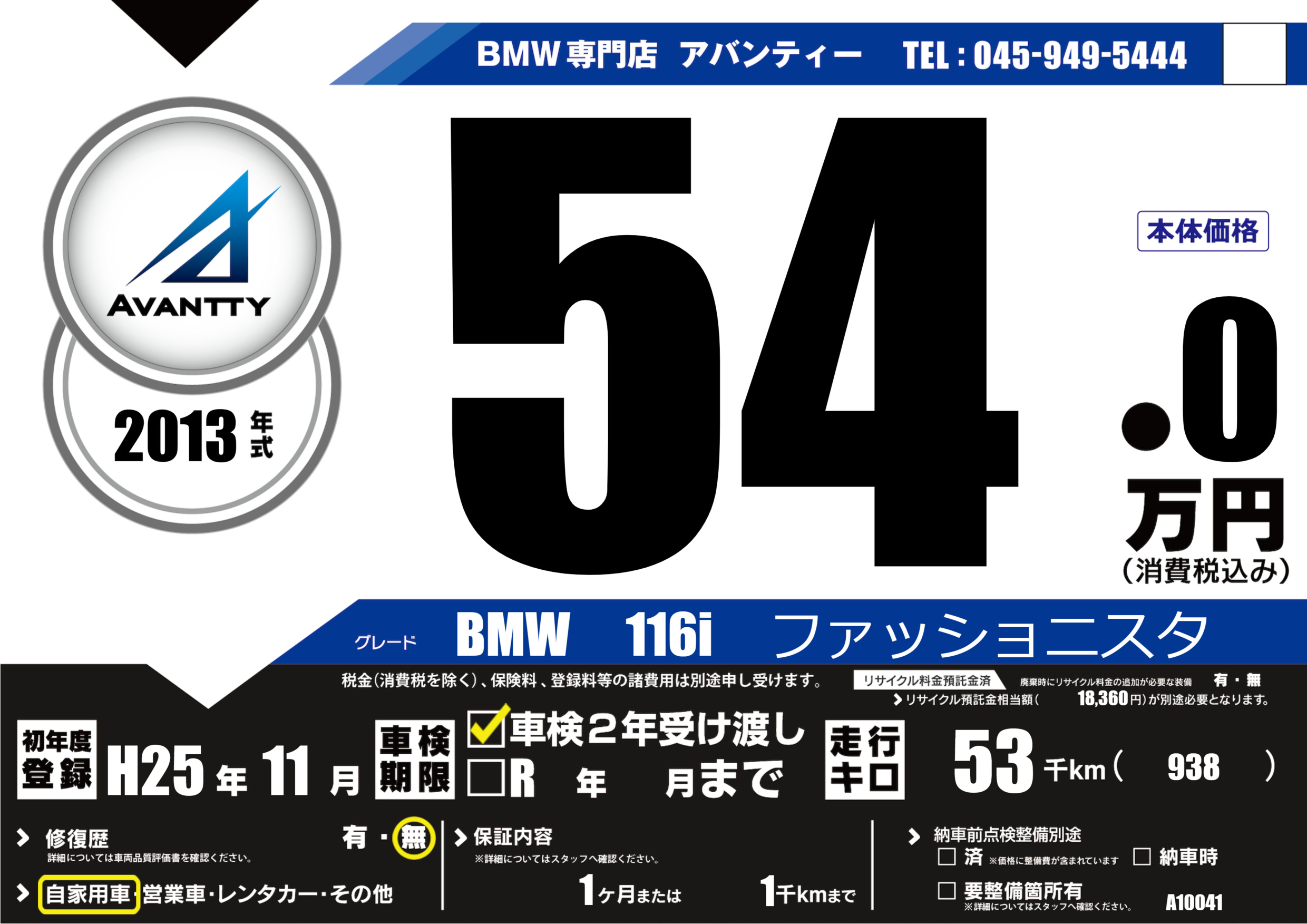 | 走行キロ | 5.3万km | 初年度登録 | H25年11月 |