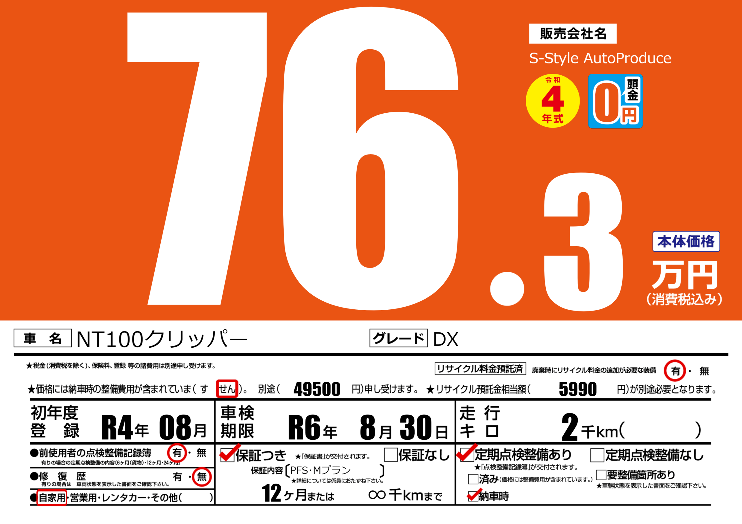 | 車検制限 | R6年 8月 30日 | ||