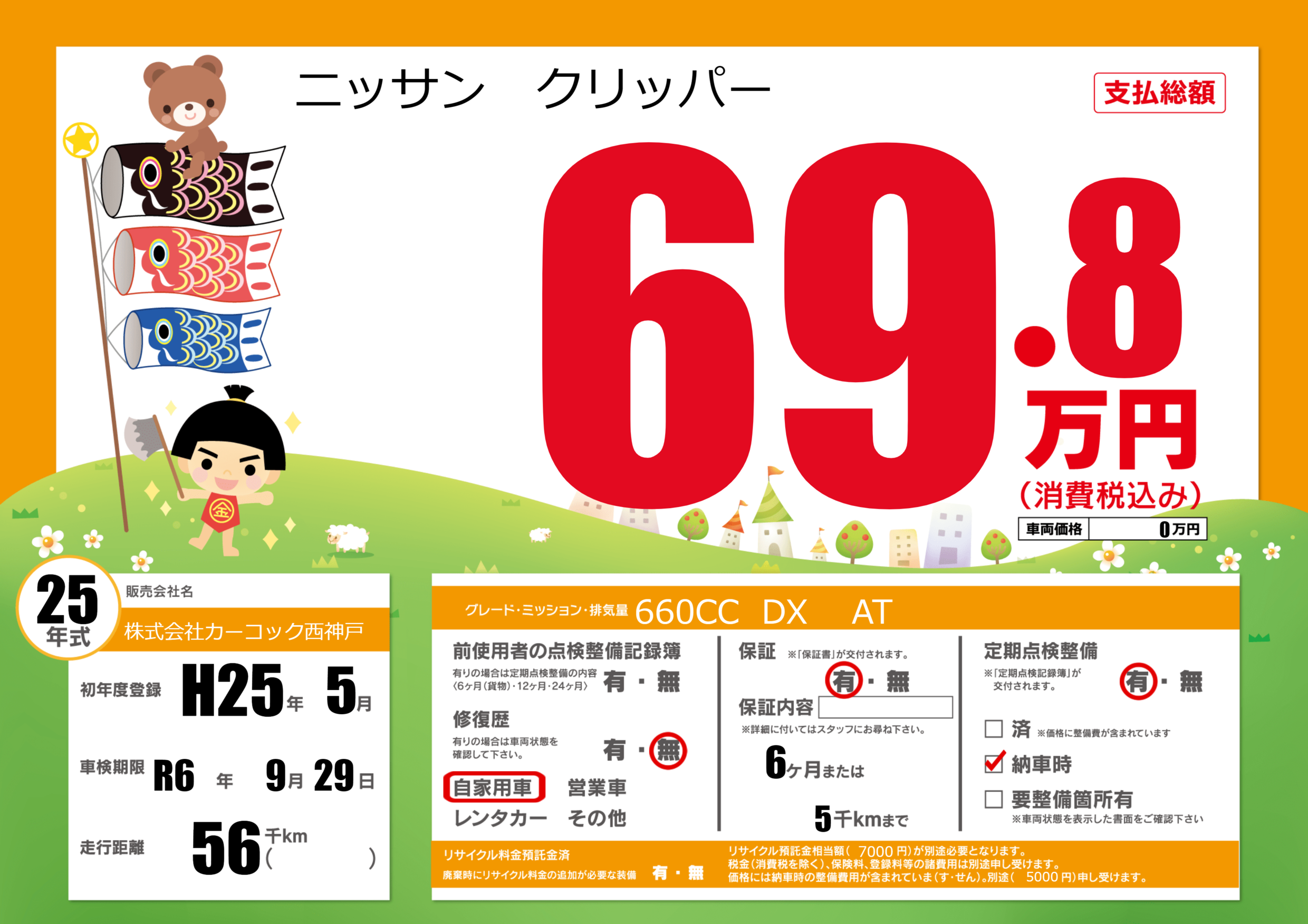 | 車名 | ニッサン クリッパー | グレード ミッション 排気量 |