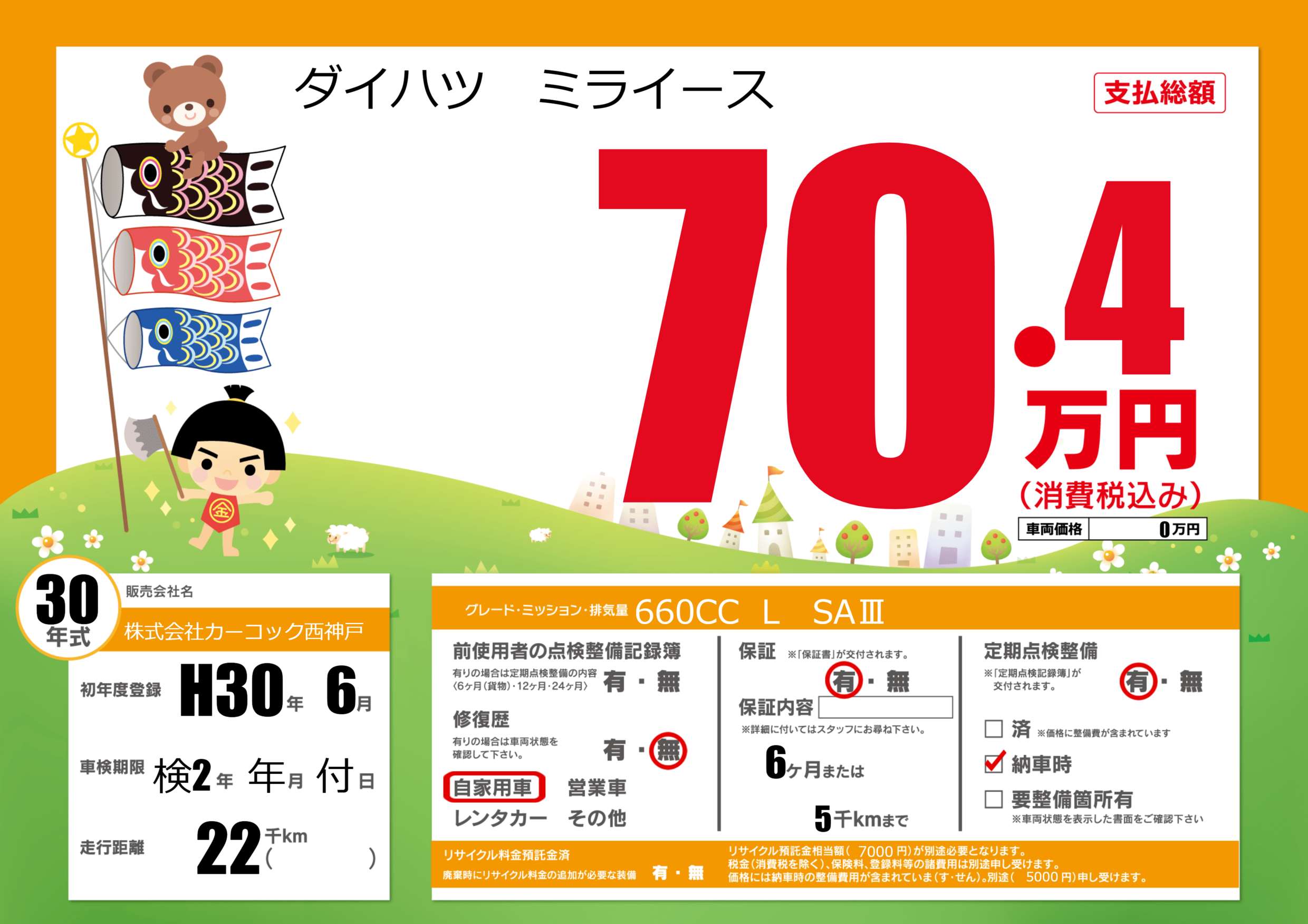 | 定期点検整備 | 定期点検整備あり 納車時あり | ||