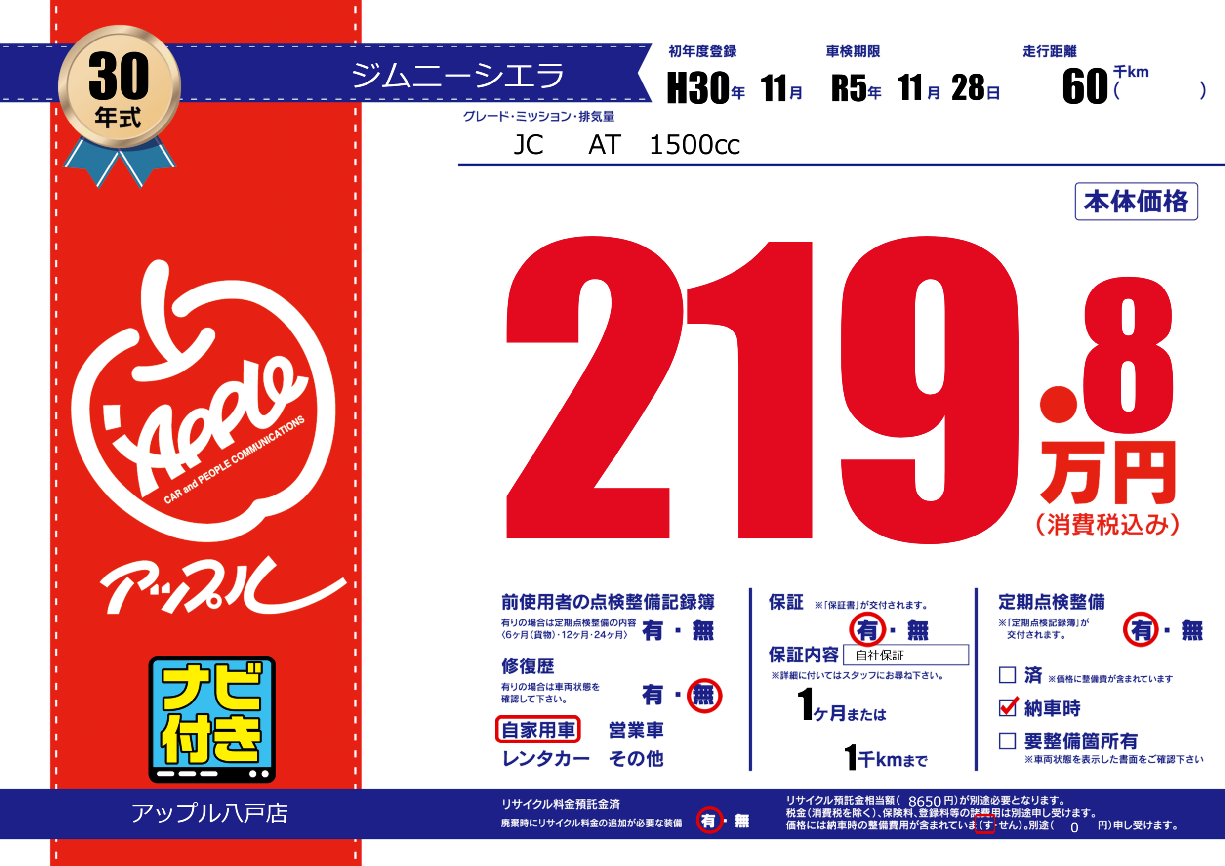保証付き 保証内容( 自社保証) 1ヶ月または(1)千kmまで |